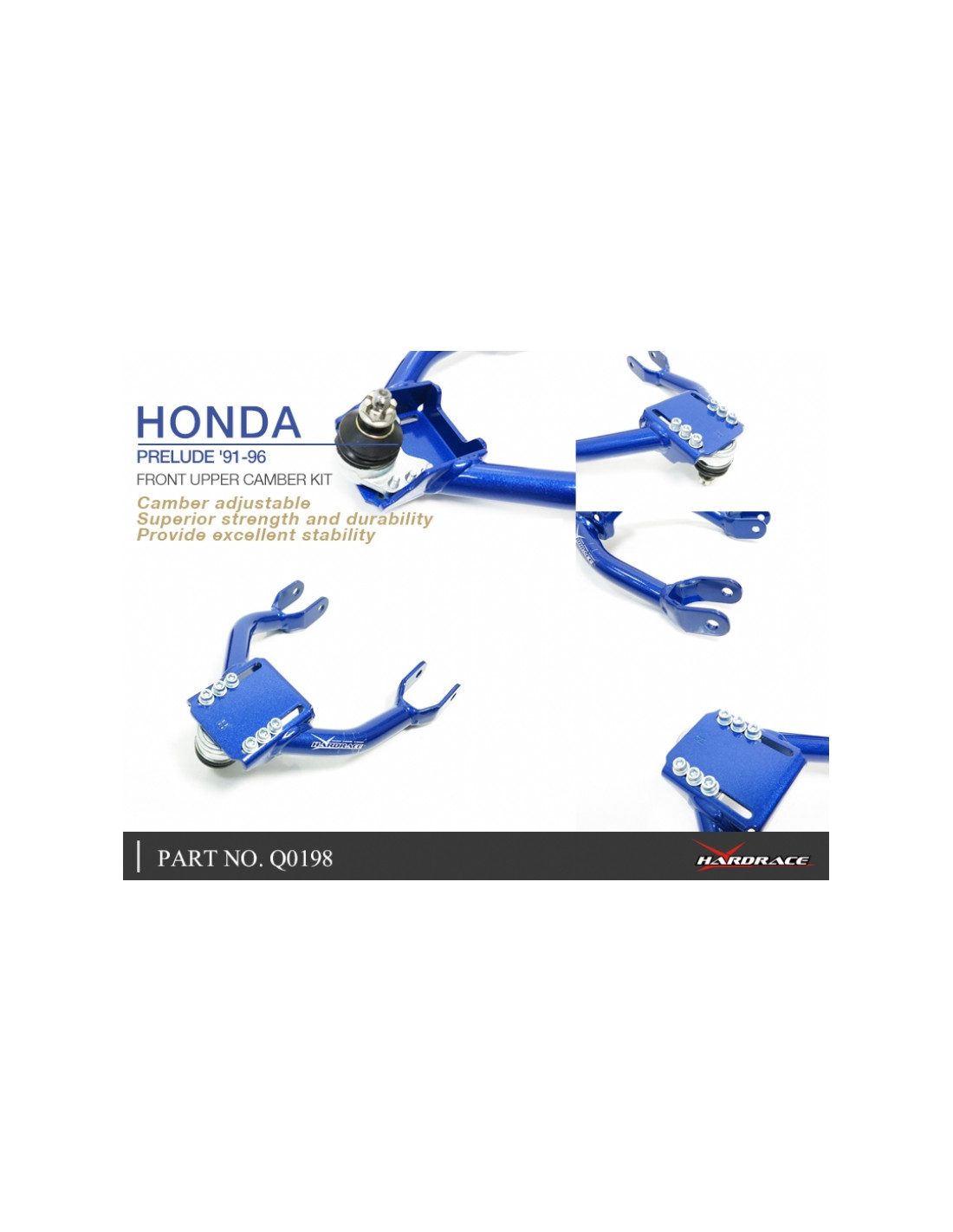 Hardrace suspension arm for Honda Prelude. Ideal for improving steering precision, stability, and response. Manufacturer's specifications : - Bushing not included. 2 PCS/SET.