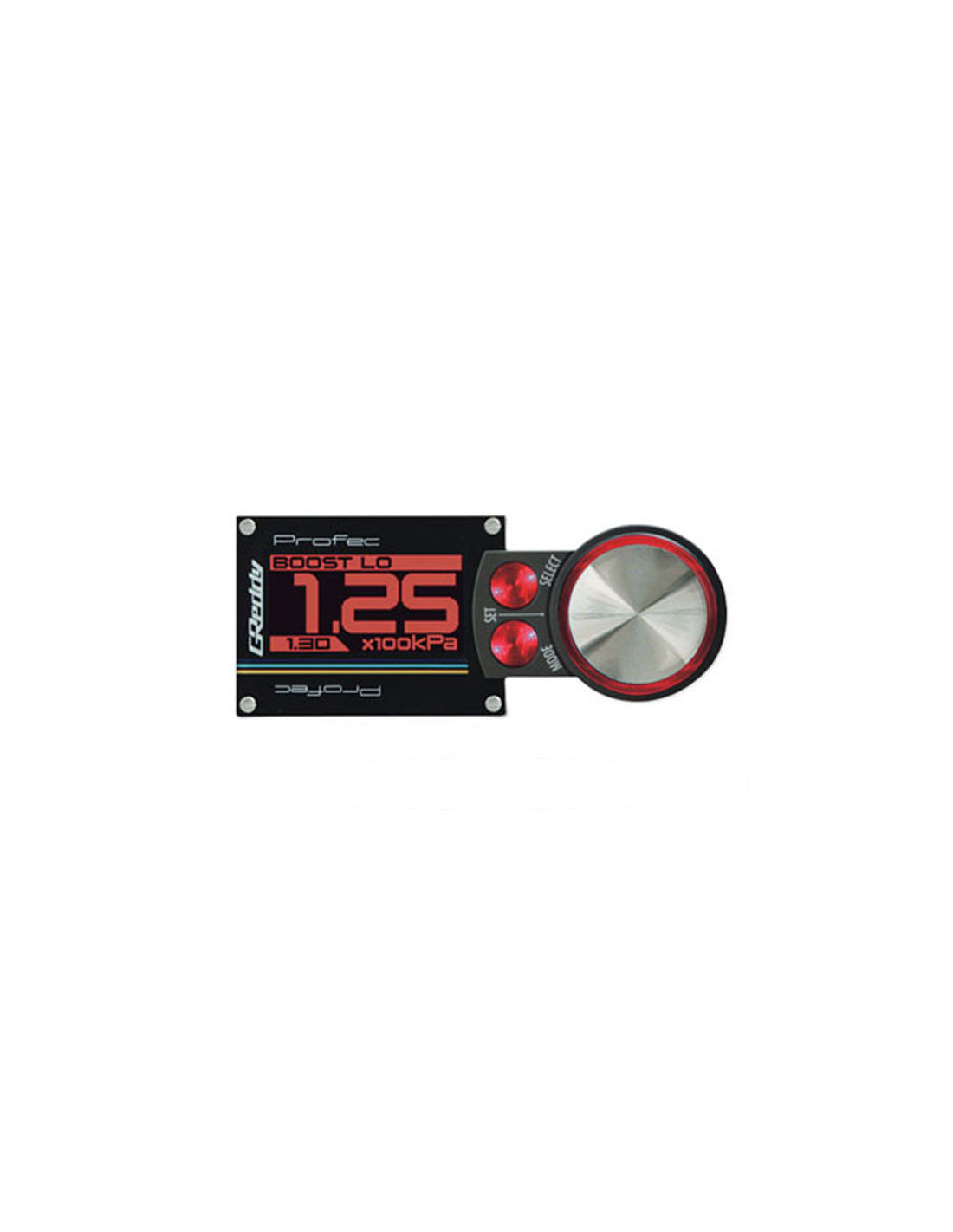 GReddy PRofec Boost Controller Powerful compact and intuitive : the words that perfectly describe the new GReddy PRofec Boost Controller. Its LED screen makes changing settings practical and clear and shows boost pressure in digital display or via different graphic modes. The GReddy PRofec Boost Controller is easily configurable and allows you to obtain required boost pressure thanks to traditional adjustable settings of gain and duty which can be saved in two modes : Lo (low pressure) and Hi (high pressure). Equipped with the latest generation solenoid and with a fast processor the GReddy PRofec guarantees stable boost pressure with extremely quick response and instant activation of the pressure limiter to prevent damage to mechanical parts. Splitting the control screen from the electronic unit GReddy has simplified installation of the PRofec. In total only one thin harness goes from the interior of the vehicle to the engine bay. The screen can be rotated 180° directions and comes with a mounting bracket making it easy to place on or in your dashboard. Features : Easy installation and setup Latest technology components quick and reliable Two memory settings (Lo and Hi) Scramble Boost function (temporary increase of boost pressure activated by a button) Records peaks Programmable alerts with light and sound Configurable boost limiter allowing to reduce boost if high pressure is reached Compatible with internal or external wastegate Withstands up to 2 5 bars of boost