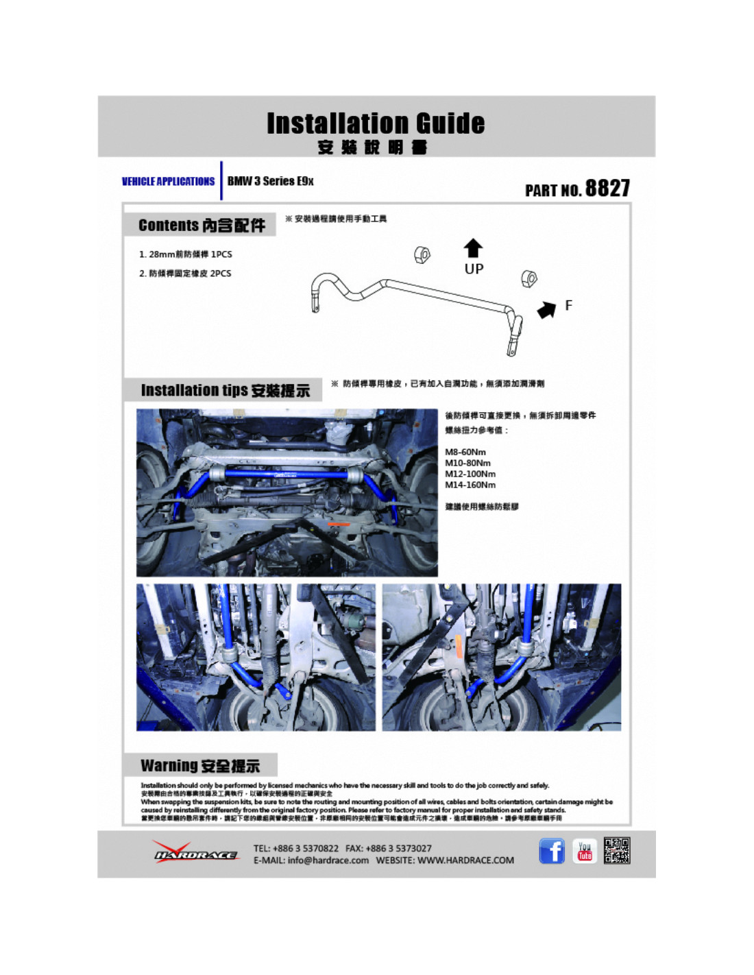 Hardrace Stabilizer Bar for BMW 1 Series, 3 Series. Ideal for improving steering precision, ride stability, and response. Manufacturer's Specifications : - 28 mm For RWD Use 3 PCS/SET