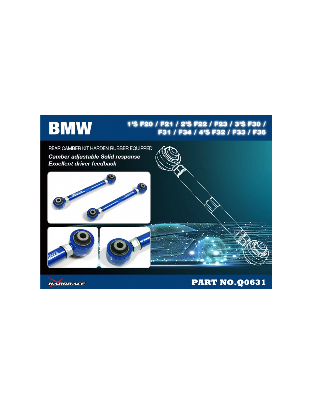 Hardrace suspension arm for BMW. Ideal for improving steering precision, stability, and response. Manufacturer's description: - Harden Rubber Equipped. 2 PCS/SET