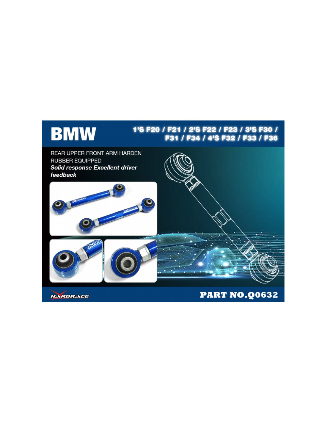 Hardrace suspension arm for BMW. Ideal for improving steering precision, stability, and response. Manufacturer's description: - Harden Rubber Equipped. 2 PCS/SET