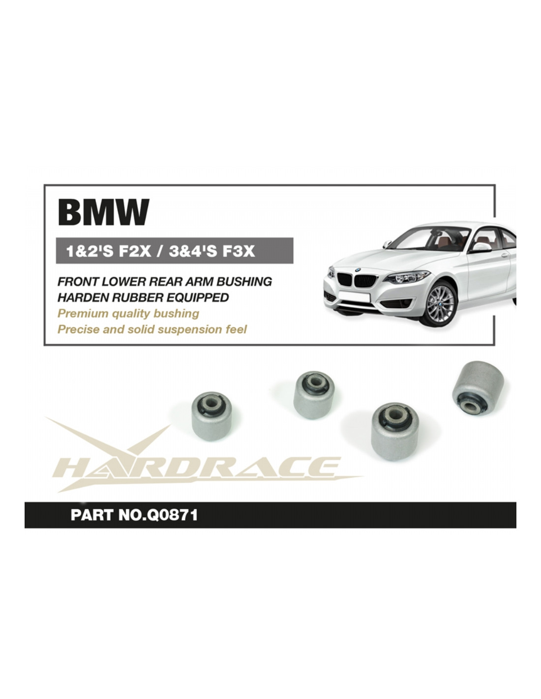 Hardrace silent block for BMW. Ideal for improving driving precision, ride stability, and steering response. Manufacturer's specifications : - For RWD & AWD. Use Harden Rubber. Equipped. 2PCS/SET.