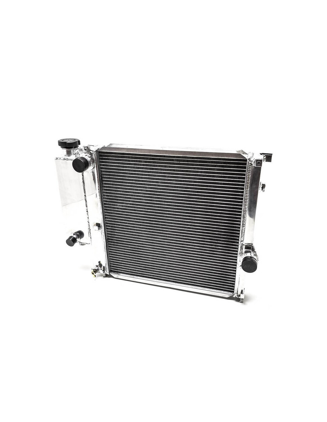 Cooling Solutions Aluminium Radiator for BMW E36 No more complicating your life with separate expansion tank installation ! Fully "bolt on" this radiator features an OEM-style fitment for all BMW E36 with built-in expansion tank. It fits all gasoline E36 models excluding M3 : 316i 318i & 318is 320i 323i 325i 328i. Whether it be for everyday trackdays or competition use Cooling Solutions offer vital improvements for all sports vehicles. Aluminium radiators increase heat transfer thanks to their superior conductivity. They ensure better cooling than stock radiators and guarantee lower operating temperatures for improved reliability and endurance. Cooling Solutions radiators are made from aviation quality TIG welded aluminium and go in place of the existing radiator without modification. Dimensions Total radiator dimensions : 66 x 47 x 9 cm OEM fitment with built-in expansion tank Core size : 44 x 44 x 5 cm Rows : 2 Chassis code : E36 Engine codes : M40B16 (316i) M40B18 (318i) M42B18 (318is) M43B16 (316i) M43B18 (318i) M44B19 (318is) M50B20 (320i) M50B25 & M50B25TU (325i) M52B20 (320i) M52B25 (323i) M52B28 (328i) Not compatible with M3