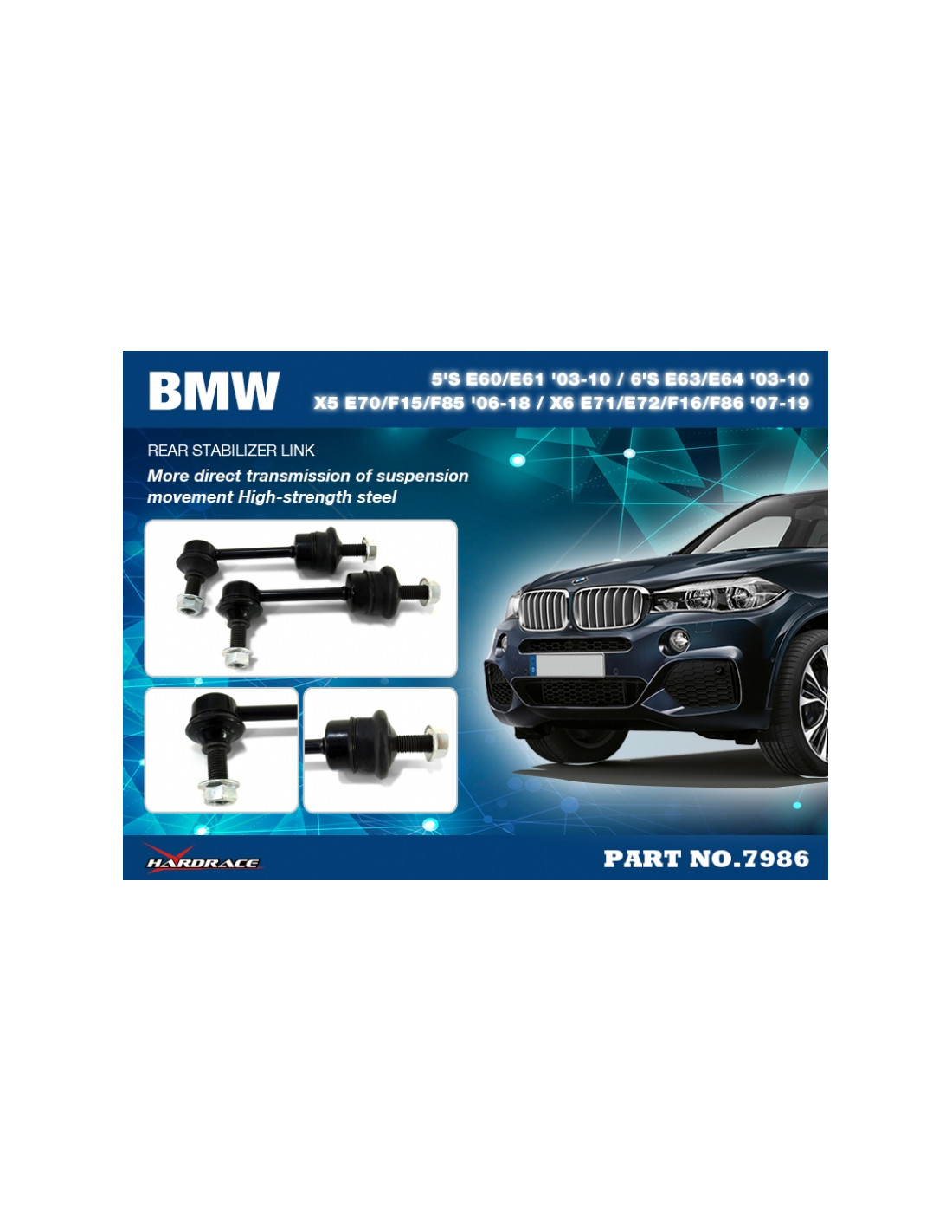 Hardrace Anti-Roll Bar Link for BMW. Ideal for improving steering precision, ride stability, and response. Manufacturer's Description: - 2 PCS/SET *E60/E61/E63/E64 for active anti-roll bar models.