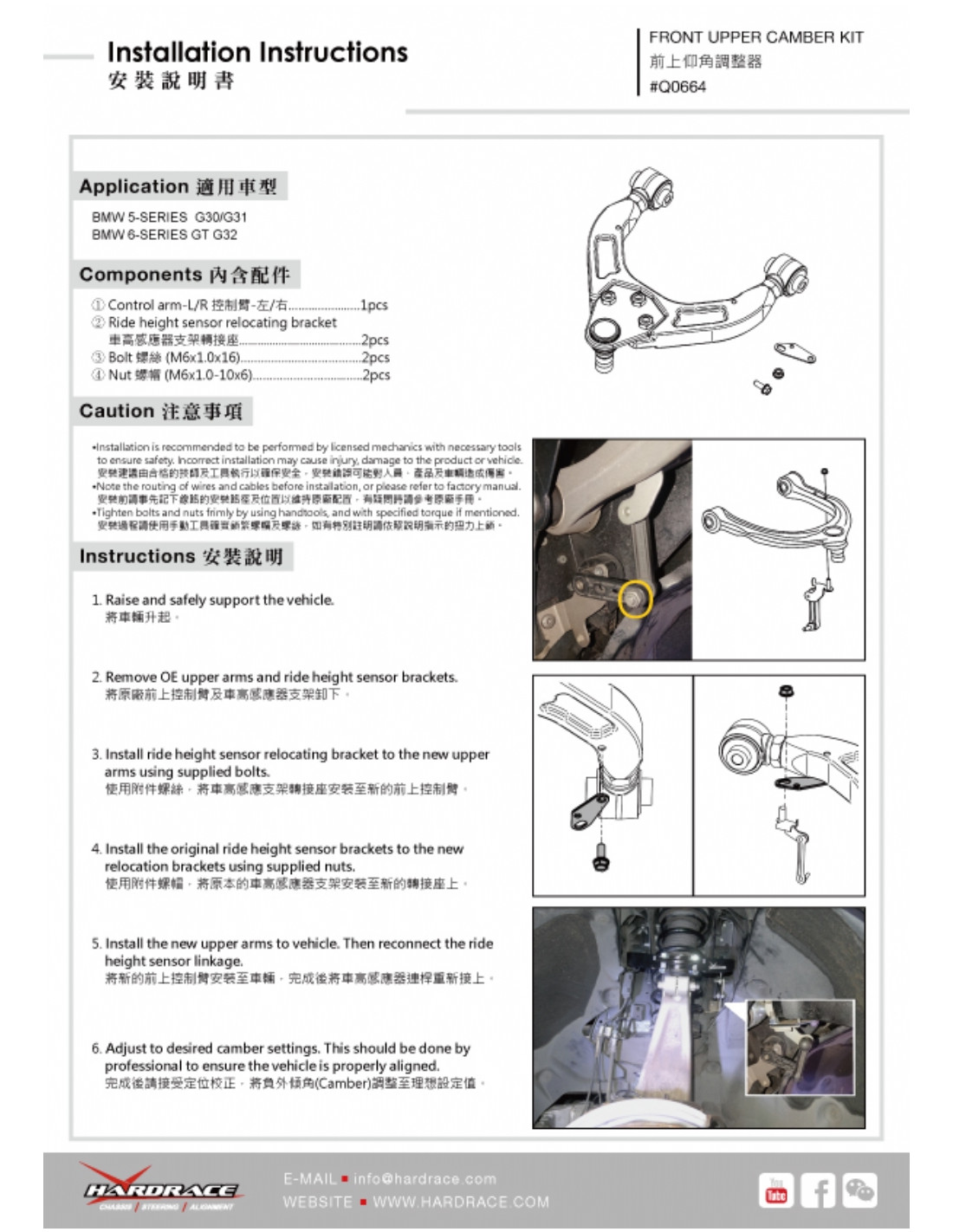Hardrace suspension arm for BMW 5 Series, 6 Series. Ideal for improving steering precision, stability, and response. Manufacturer's description: - Harden Rubber Equipped 2 PCS/SET