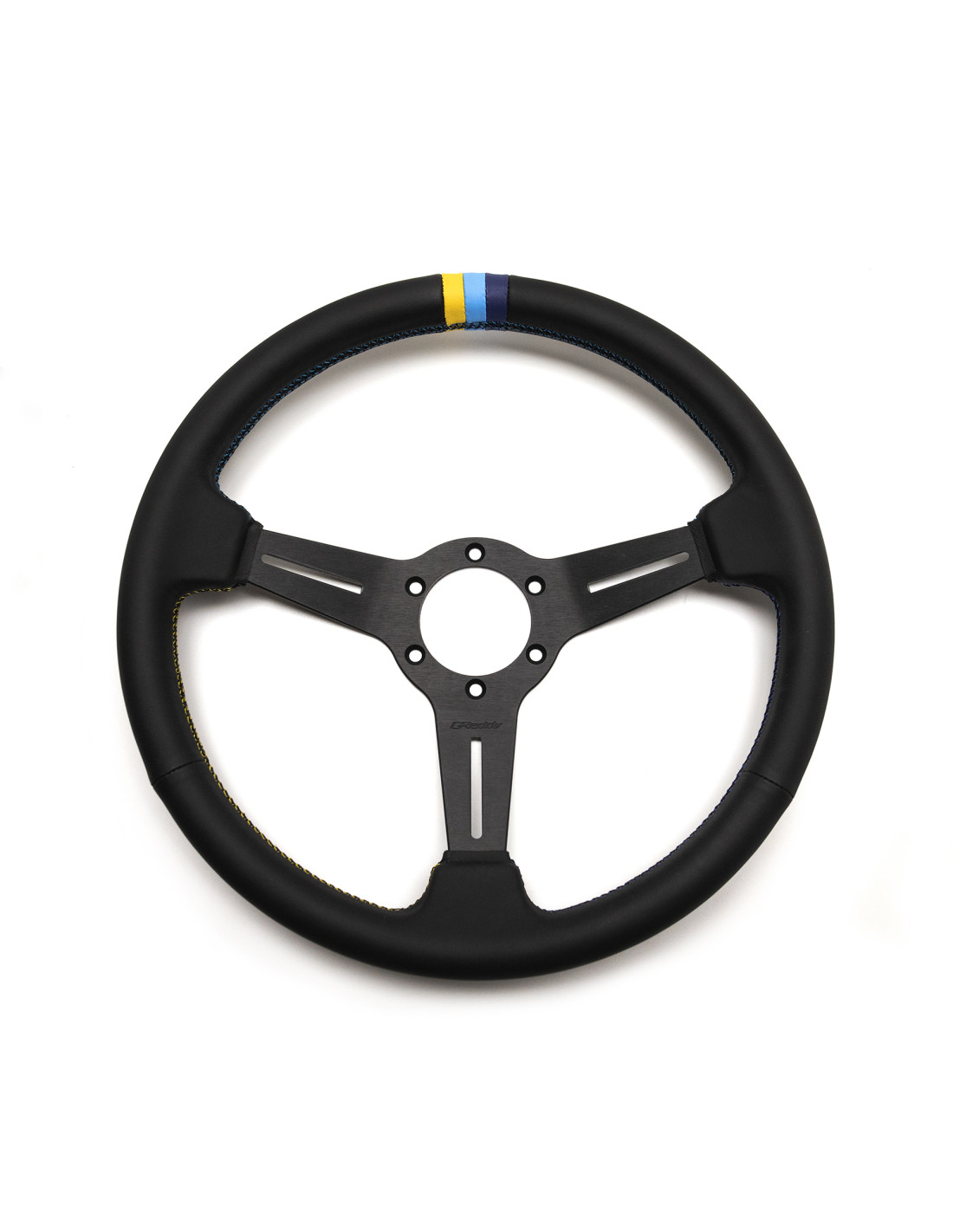 GReddy Sports "Medium Type" Steering Wheel (47 mm Dish), Black Leather, Black Spokes - 340 mm