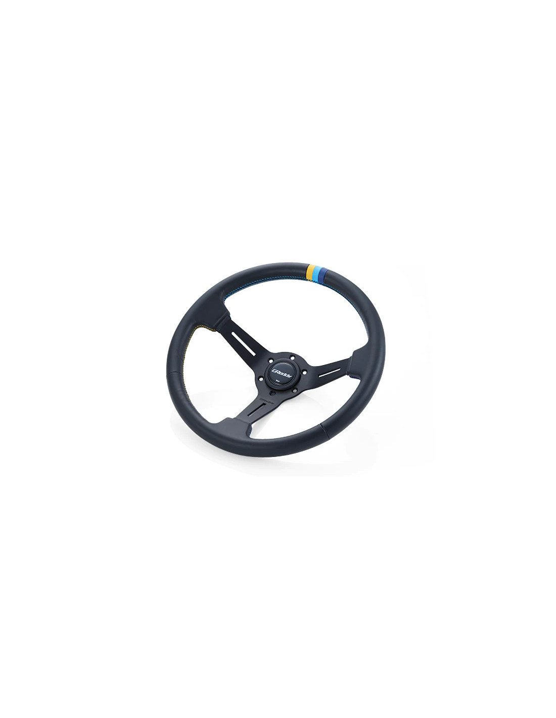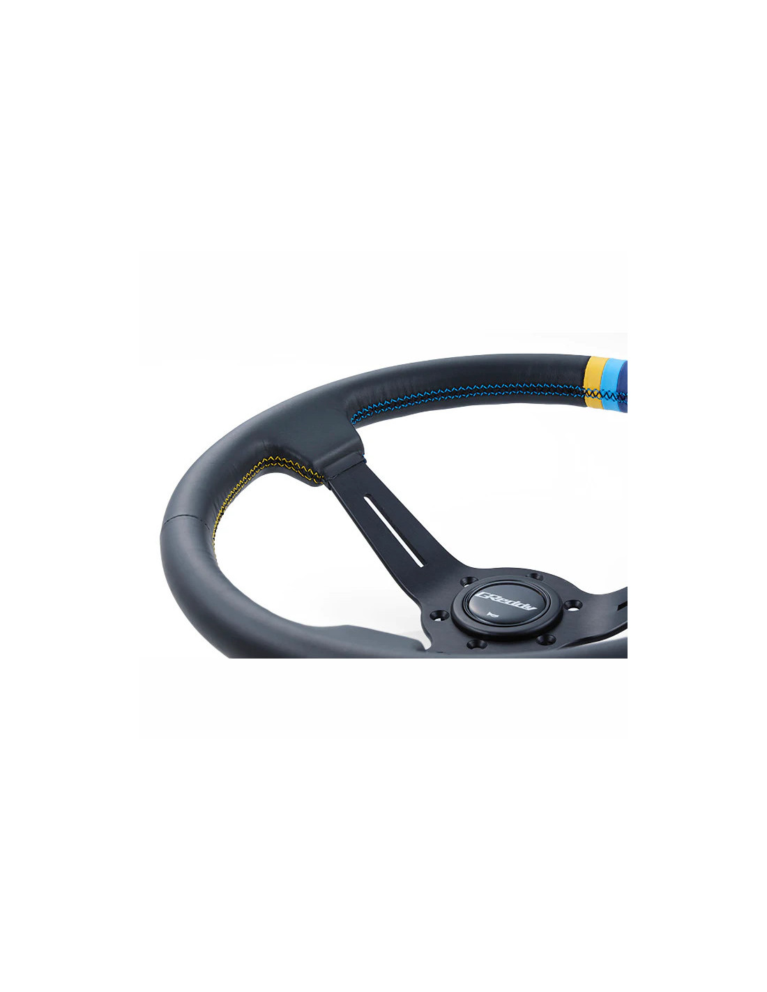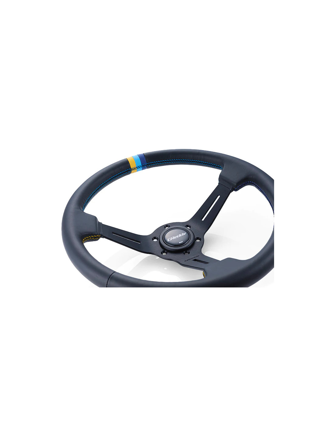 GReddy Sports "Deep Type" Steering Wheel Japanese design and quality ! Diameter : 34 cm Dish : 80 mm Black anodized spokes with engraved logo Black leather Horn button with GReddy logo 3-color leather central mark 3-color stitching PCD : 6x70 mm About GReddyFounded in Japan in 1977 Trust is a major player in the world of performance parts. Trust makes all of its products in Japan at its factory in the suburbs of Tokyo. Their vast catalog comes under several brands including GReddy (exhausts turbocharger kits radiators and intercoolers electronics ...) GREX and GRacer.