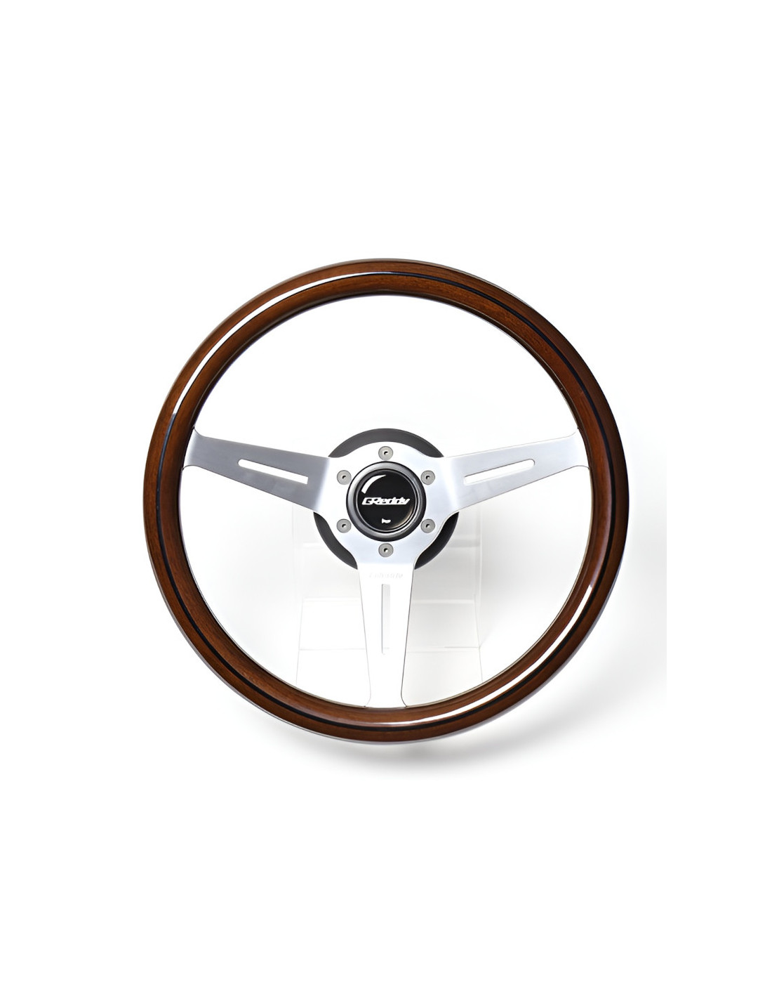 GReddy Sports "Wood Type" Steering WheelJapanese design and quality !Diameter : 34 cmDish : 47 mmAluminium spokes with engraved logoDark brown wood with black lineHorn button with GReddy logoPCD : 6x70 mm About GReddyFounded in Japan in 1977 Trust is a major player in the world of performance parts. Trust makes all of its products in Japan at its factory in the suburbs of Tokyo. Their vast catalog comes under several brands including GReddy (exhausts turbocharger kits radiators and intercoolers electronics ...) GREX and GRacer.