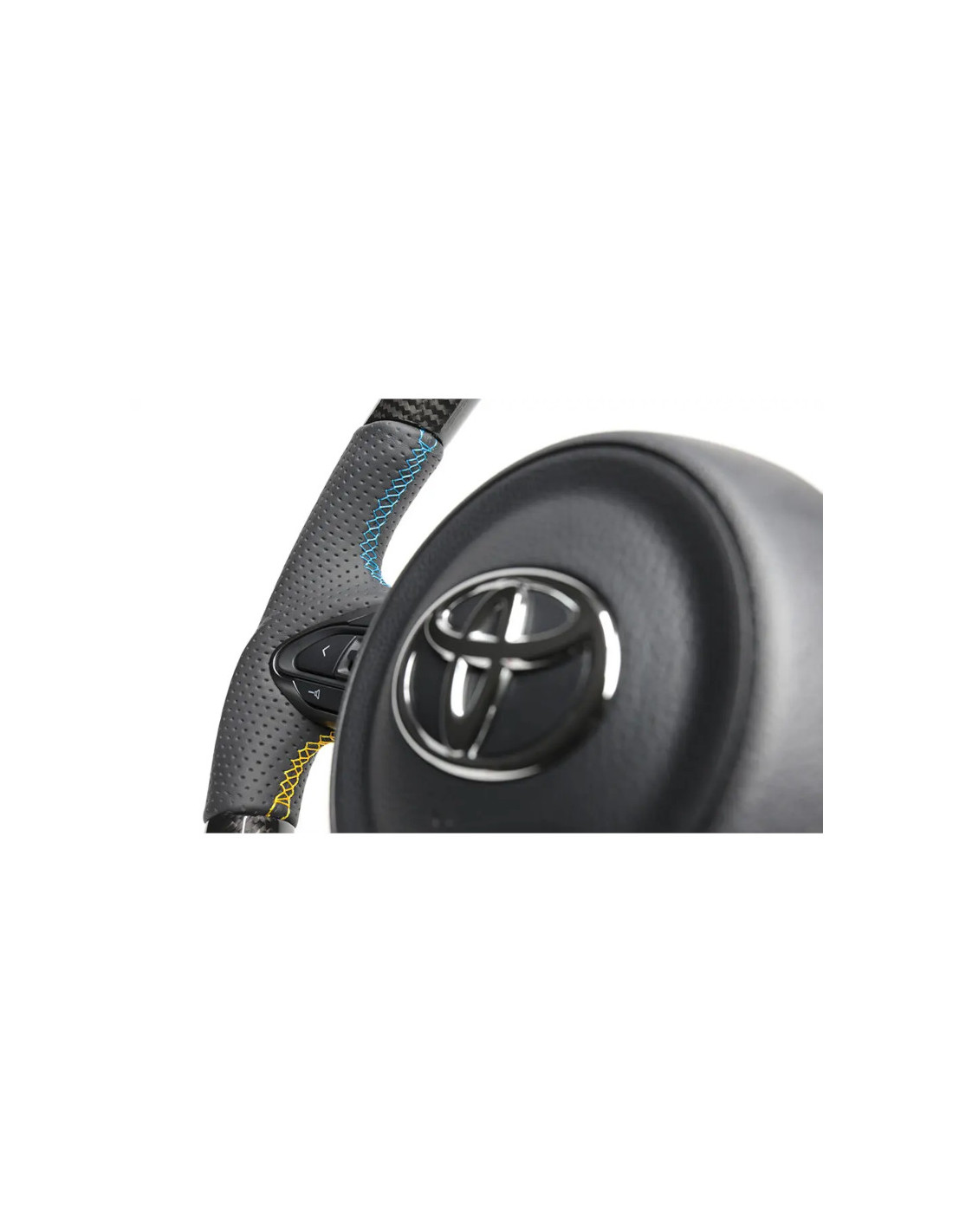 GReddy GXPA16 Steering WheelTo suit Toyota GR Yaris GXPA16True to the OE steering wheel designDiameter : 355 mmBlack carbon and high-quality leather upholsteryHand-made GReddy 3-color stitchingLightweight and highly rigid frameEngraved GReddy logoCompatible with genuine steering wheel parts (except steering wheel heater) GReddy Black Carbon Steering Wheel with 3-Color Stitch for Toyota Yaris GR SpecificationsDesigned for the Toyota GR Yaris GXPA16 this GReddy steering wheel enhances the driving experience by providing superior comfort while retaining the design and functionality of the standard steering wheel. It is covered in real black carbon and leather with pistol grip sides for an excellent grip. The GReddy logo reinforces the sporty look.With a diameter of 355 mm (10 mm less than the original) this steering wheel allows for more direct handling by limiting the extent of movement. It rests on a light rigid frame and features hand stitching in the GReddy colours (blue yellow and navy).The parts supplied with the genuine steering wheel the airbag and the paddle shifters can be transferred as they are to this GReddy steering wheel. Note that if the vehicle is fitted with a heated steering wheel this function will not be compatible with this product. The airbag switches paddle shifters and covers are not included.