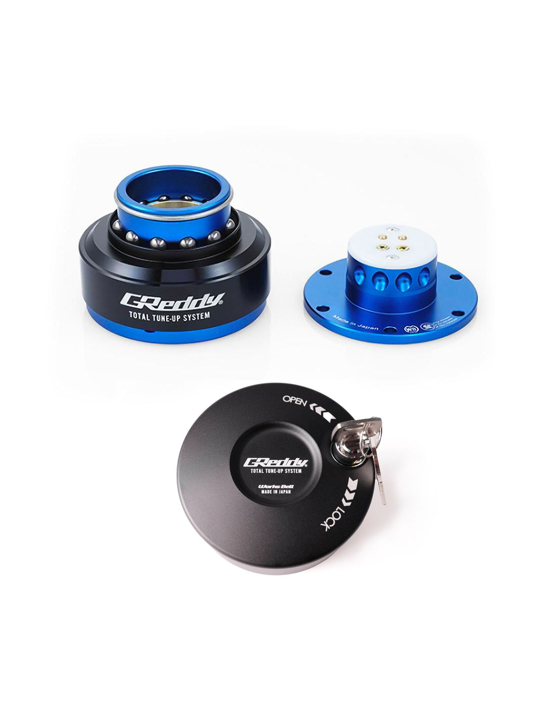 GReddy RapFix II Anti-Theft Quick Release SpecificationsGReddy has teamed up with Japanese specialist Works Bell to bring you this high quality quick release adapter with hub lock device. It enables you to easily remove the steering wheel for easy access to the vehicle improve the driving position by moving the steering wheel about 60 mm closer to the driver and also lock the hub to prevent theft of the vehicle. This set combines two products a very resistant quick release adapter with a patented locking-ball mechanism and an anti-theft system to be attached on the hub side mount once the steering wheel is removed. Since it is entirely mechanical with no electrical components this key lock is particularly reliable and functional. For added security your vehicle's horn goes off instantly if it is forced. Universal product compatible with all GReddy Sparco Nardi DriftShop Momo etc. hubs and steering wheels.