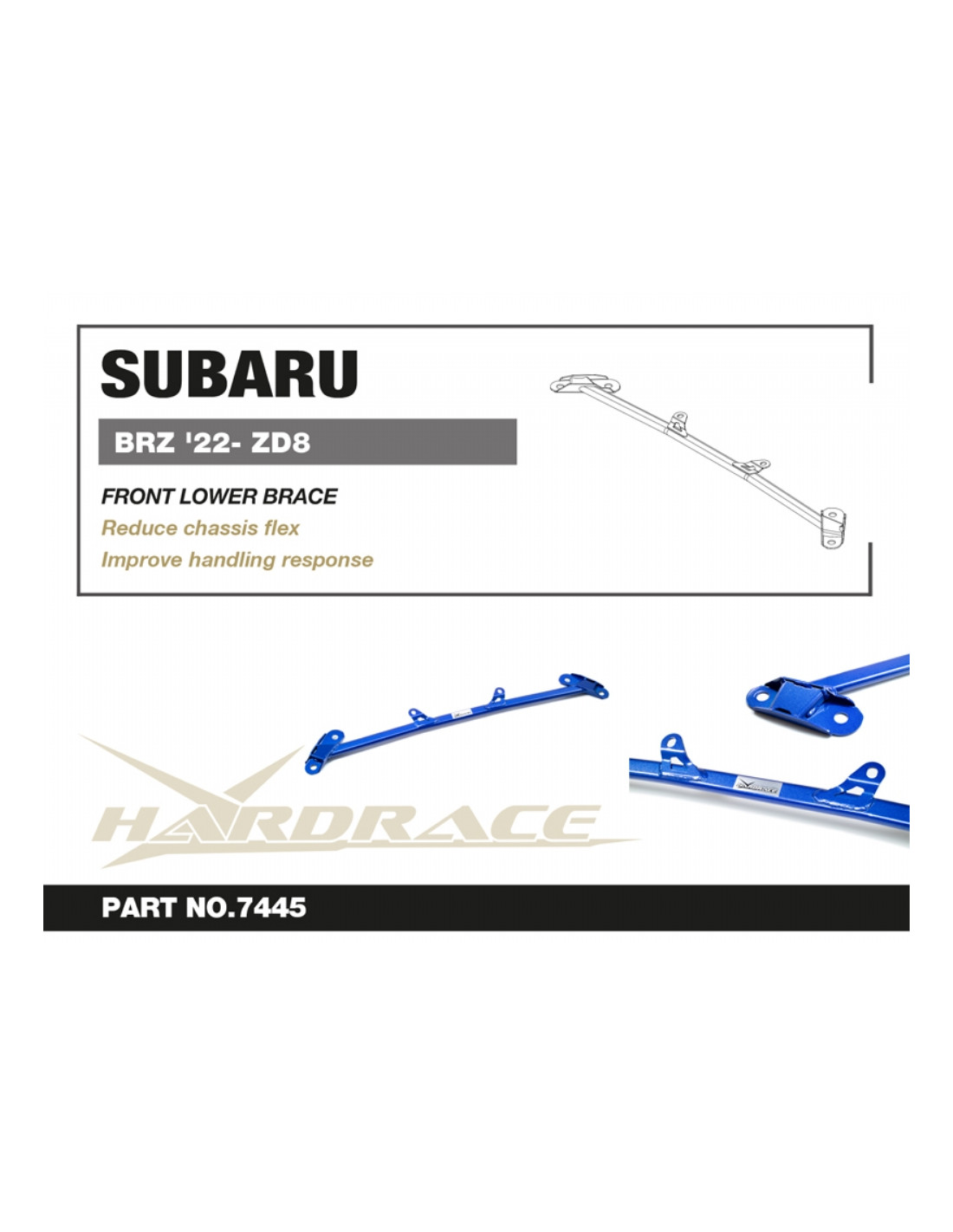 Hardrace strut brace for Subaru BRZ, Toyota 86, Scion FR-S. Ideal for improving steering precision, stability, and response. Manufacturer's specifications : - 1 PCS/SET