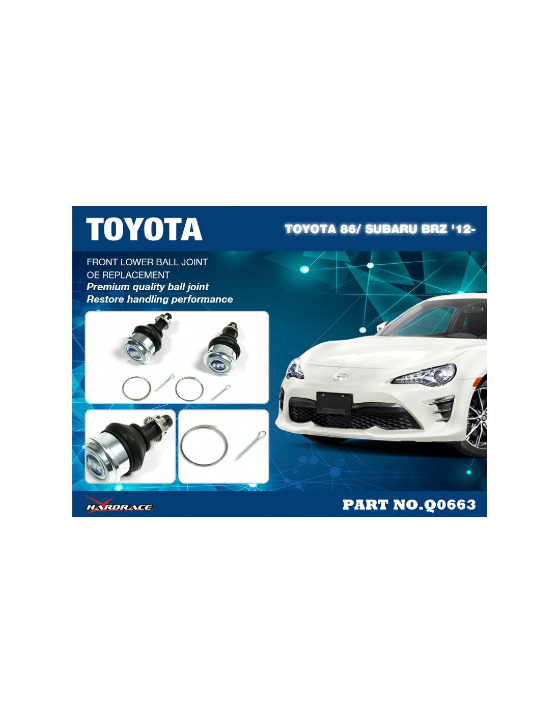 Hardrace RC Ball Joint for Scion FR-S, Subaru BRZ, Toyota 86. Ideal for improving driving precision, trim stability and steering response. Features from the manufacturer (original description in English): - Original Replacement 2 PCS/SET