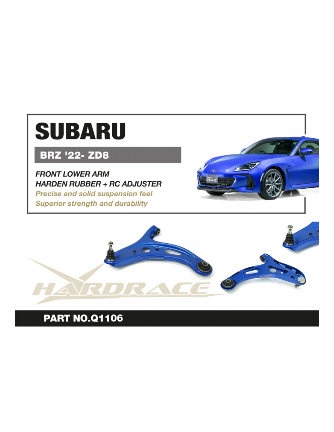Hardrace suspension arm for Subaru BRZ. Ideal for improving driving precision, trim stability, and steering response. Manufacturer's description: - Harden Rubber Equipped RC Ball Joint Included 2 PCS/SET