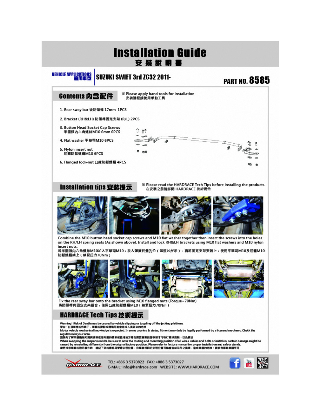 Hardrace Stabilizer Bar for Suzuki Swift. Ideal for improving steering precision, stability, and response. Manufacturer's Specifications : - 17 mm 3 PCS/SET * FOR 1.6 L ZC32S