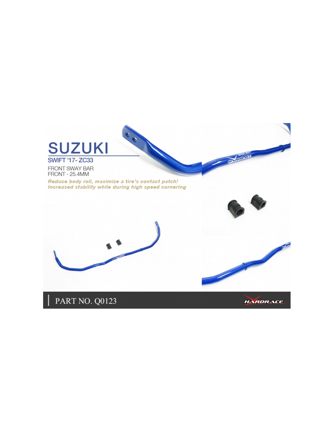 Hardrace Stabilizer Bar for Suzuki Baleno, Swift. Ideal for improving steering precision, stability, and response. Manufacturer's Specifications : - 25.4 mm 3 PCS/SET