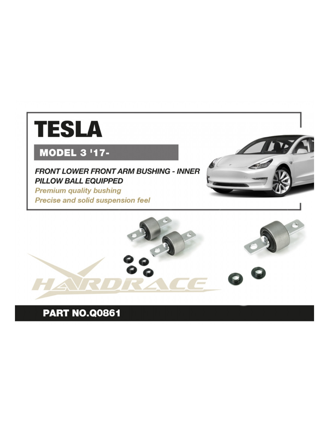 Hardrace silent block for Front Lower Front Arm Bushing - Inner Tesla Model 3, Model y. Ideal for improving driving precision, trim stability and steering response. Features from the manufacturer (original description in English): - Pillow Ball Equipped 2 PCS/SET