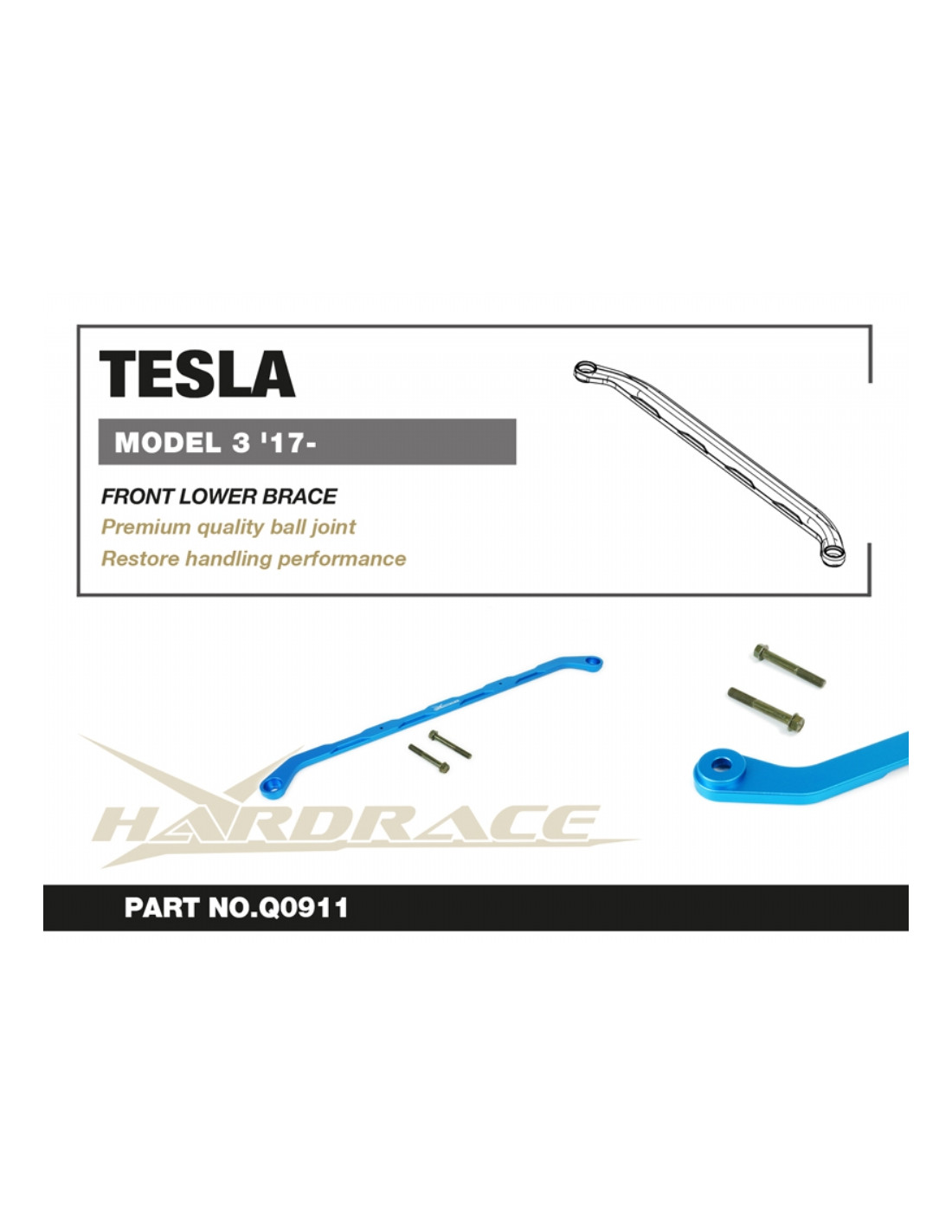 Hardrace Front Lower Brace Reinforcement Bar for Tesla Model 3. Ideal for improving driving precision, trim stability and steering response. Manufacturer's Description : - 1 PCS/SET