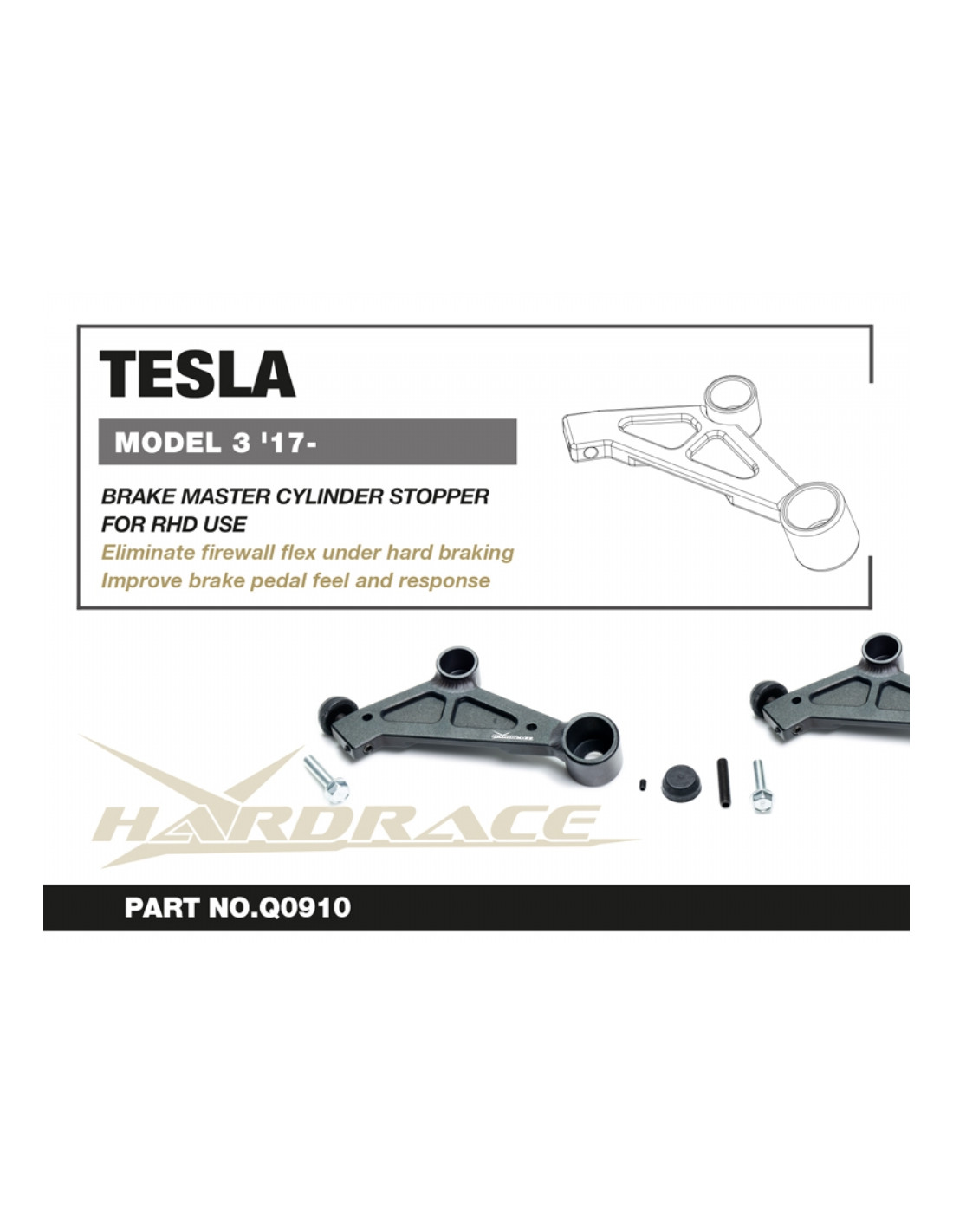 Hardrace Reinforcement Bar for Brake Master Cylinder Stopper Tesla Model 3. Ideal for improving driving precision, trim stability and steering response. Features from the manufacturer (original description in English): - * For Right-hand Drive Cars Use 1 PCS/SET