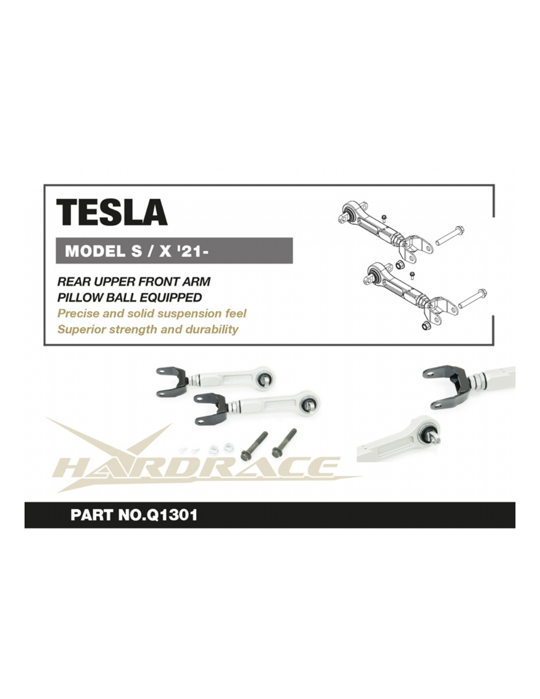 Hardrace Rear Upper Front Suspension Arm for Tesla Model S, Model X. Ideal for improving steering precision, stability, and response. Manufacturer's Description: - Pillow Ball Equipped 2 PCS/SET