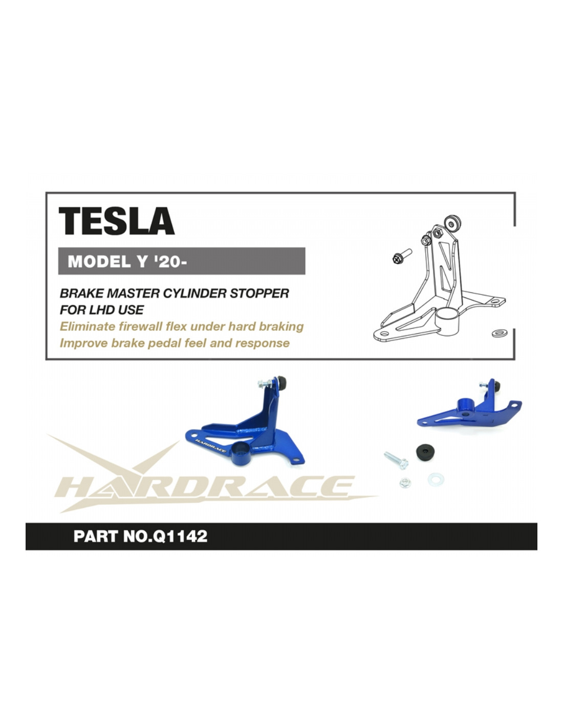Hardrace Reinforcement Bar for Brake Master Cylinder Stopper Tesla Model Y. Ideal for improving driving precision, trim stability, and steering response. Manufacturer's Specifications : - * For Left-hand Drive Cars Only 1 PCS/SET