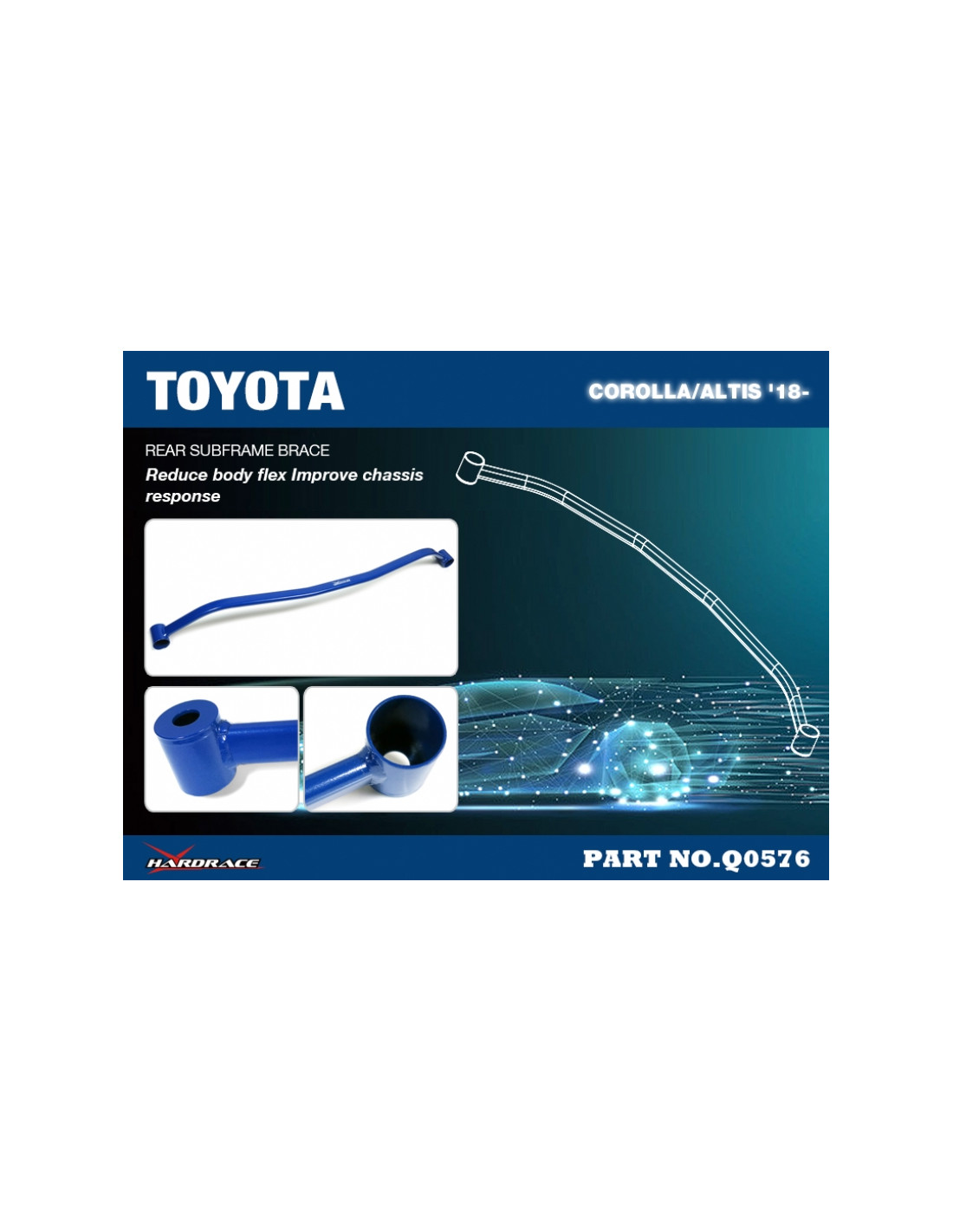 Hardrace strut brace for Toyota Corolla/Altis/Auris. Ideal for improving steering precision, stability, and response. Manufacturer's specifications : - 1 PCS/SET