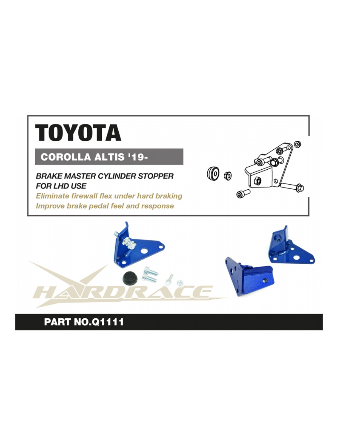 Hardrace strut brace for Toyota Corolla/Altis/Auris. Ideal for improving steering precision, stability, and response. Manufacturer's specifications : - * For Left-hand Drive Cars Only * Not For Hybrid Models Use 1 PCS/SET