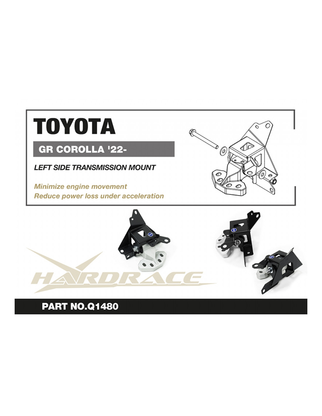 Hardrace engine mount for Toyota Corolla/Altis/Auris. Ideal for improving driving precision, trim stability and steering response. Manufacturer's specifications : - For 6MT Gearbox Only Solid Bushing + CNC Aluminum Body 1 PCS/SET