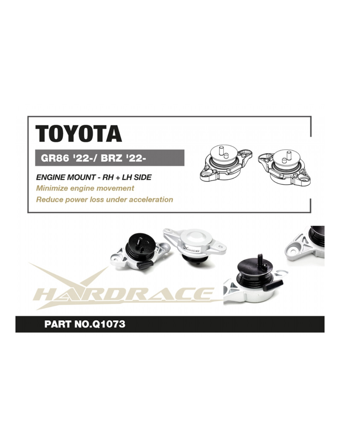 Hardrace engine mount for Subaru BRZ, WRX, Toyota 86. Ideal for improving driving precision, trim stability, and steering response. Manufacturer's specifications : - 2 PCS/SET
