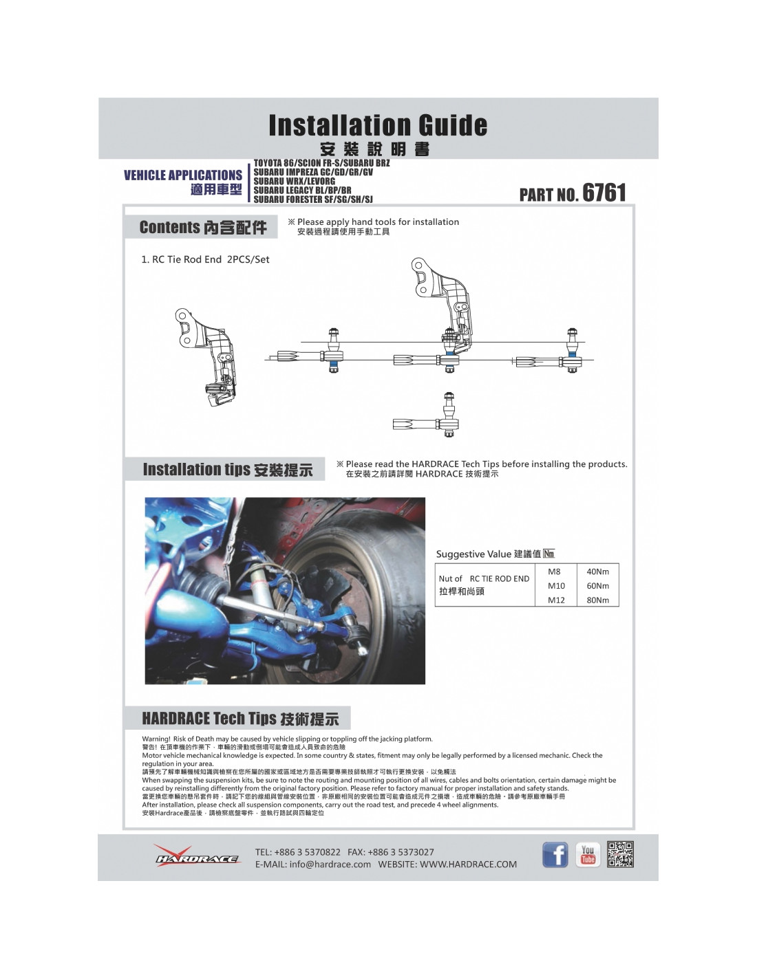 RC Hardrace Tie Rod End for Scion, Subaru, Toyota. Ideal for improving steering precision, stability, and response. Manufacturer's Description: - For Lowered Suspension Use. Pillow Ball Equipped. 2 PCS/SET.