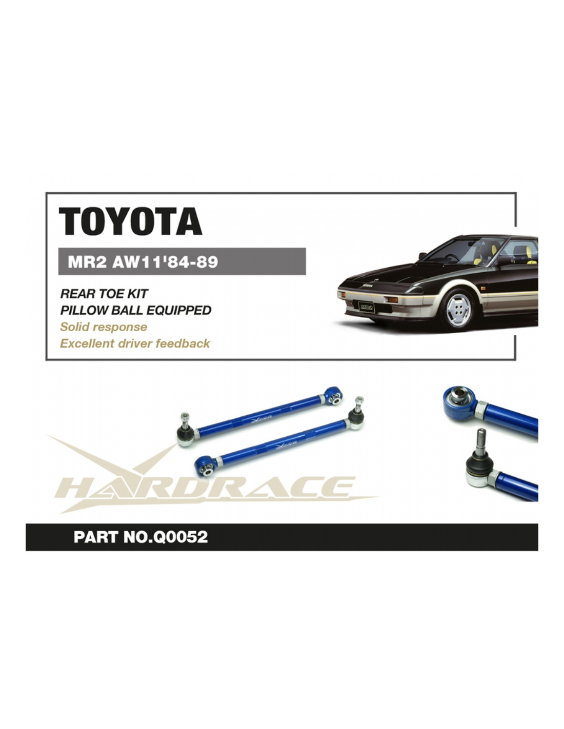 Hardrace Suspension Arm for Toyota MR2. Ideal for improving steering precision, stability, and response. Manufacturer's Specifications : - For '84-86 Use Pillow Ball Equipped Adjustment range: 380 to 420mm 2 PCS/SET