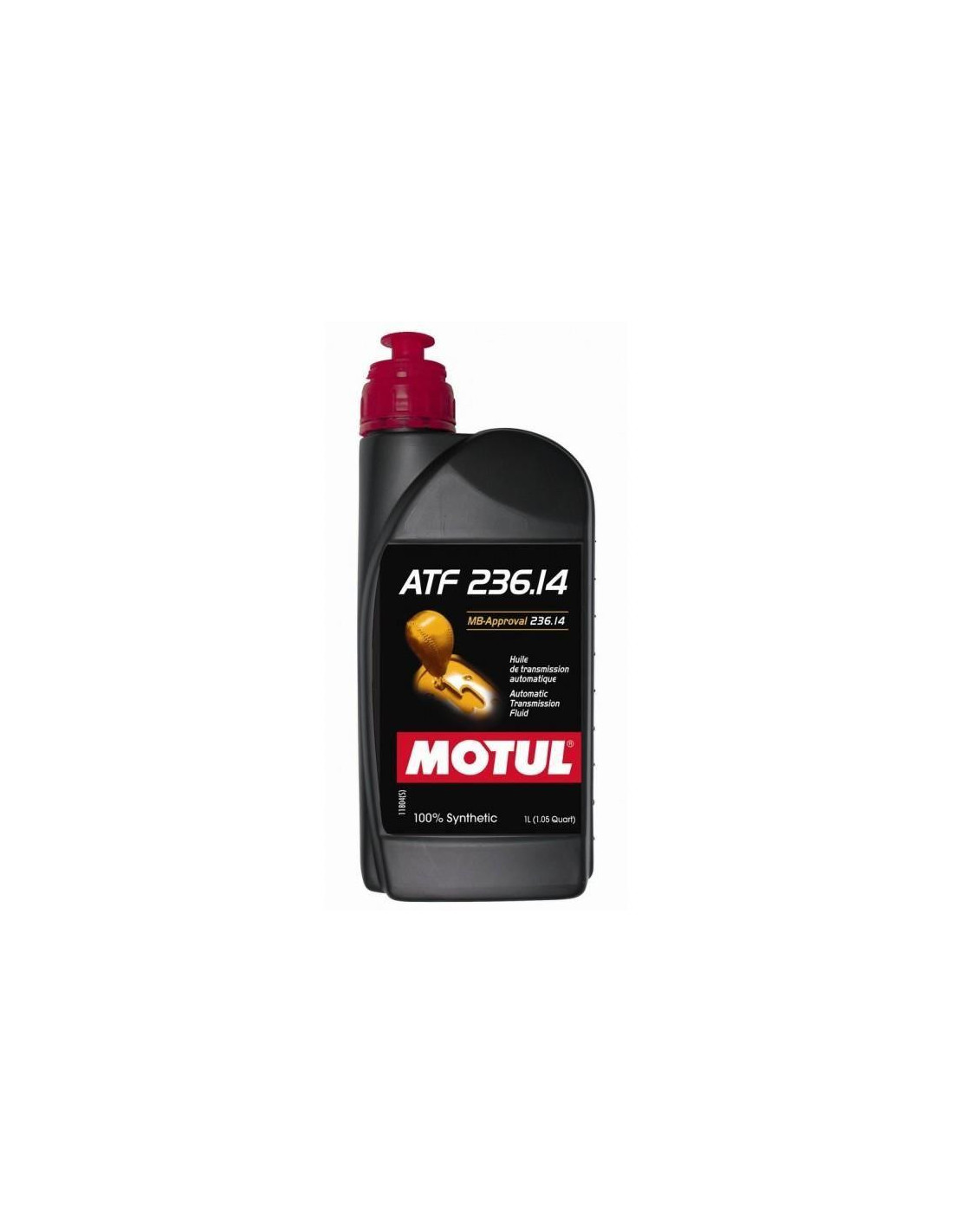 Motul ATF 236.14 for Mercedes High performance 100% synthetic Designed for Mercedes automatic transmissions « MB-Approval 236.14 » Seal Sold per 1LMotul ATF 236.14 Oil (1L) Specifications This high performance low viscosity 100% synthetic oil has been developed for Mercedes automatic transmissions with the label « MB-Approval 236.14 ».