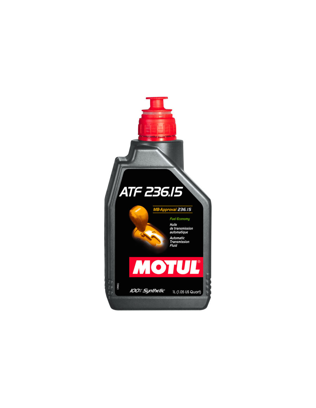 Mercedes Motul ATF 236.15 100% synthetic high performance oil Helps reduce fuel consumption Designed for Mercedes 7 speed automatic gearboxes Latest generation « MB-Approval 236.15 » seal Sold per 1LMotul ATF 236.15 Oil (1L) Specifications This high performance 100% synthetic energy saving oil has been specially developed for Mercedes 7 speed automatic gearboxes with the latest generation « MB-Approval 236.15 » seal.