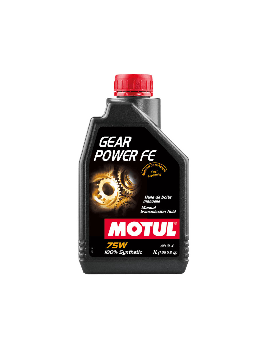 Motul Gear Power FE Manual Transmission Fluid100% synthetic monograde 75W fluidDesigned for newer manual gearboxesHigh performance lubricantIdeal for road or competition useFuel economyAPI GL4 standardSold per 1 litreMotul Gear Power FE 75W Manual Transmission Fluid SpecificationsMotul Gear Power FE 75W high performance transmission oil has been specially formulated for manual gearboxes of recent vehicles requiring low viscosity fluid. It is indicated in all conditions of street or racing use. Its 100% synthetic composition offers maximum protection to your gears: high lubricating power stable viscosity optimal cooling and long life.This extreme pressure fluid is packaged in a 1 litre bottle and is compatible with all manual gearboxes requiring 75W monograde oil conforming to API GL-4 standard. Its high lubricity reduces friction while its high fluidity at very low temperatures favours cold gear engagement. The use of this oil also contributes to fuel savings.Have a question regarding transmission fluids? Please don't hesitate to contact us!