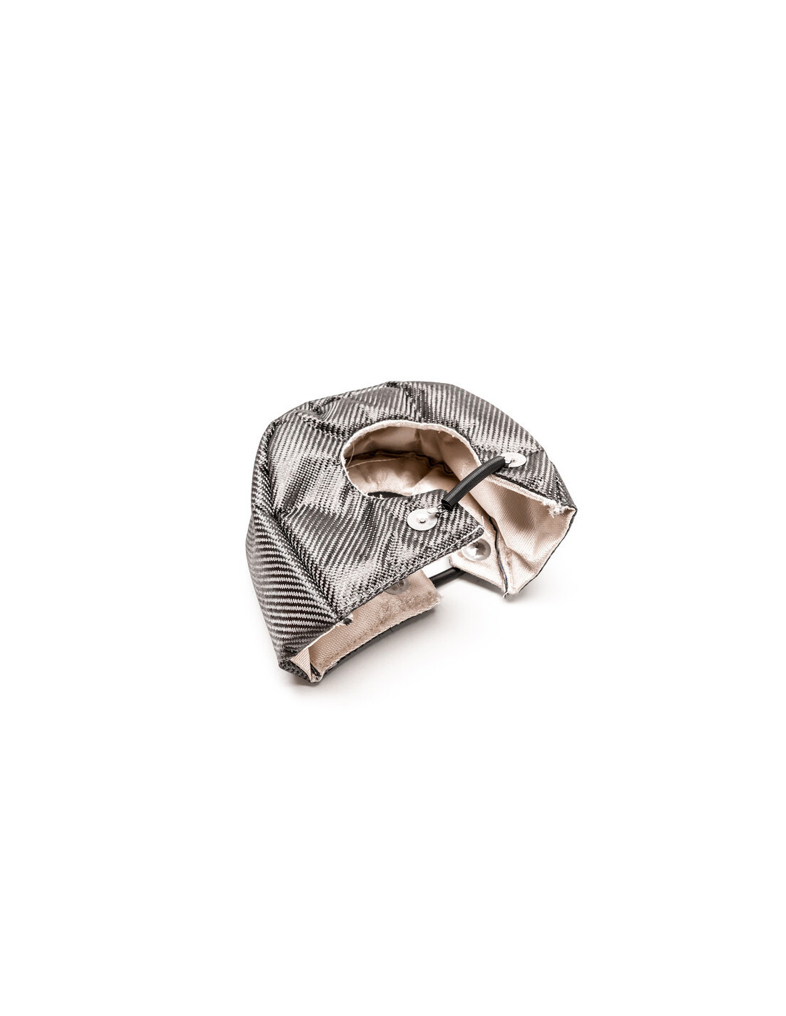 Carbon Fiber Turbo Blanket for T5 / T6 (Thermal Protection)This thermal protection item commonly known as a turbo blanket is installed directly onto the exhaust housing of your turbo and provides very effective insulation. It is sized for most common T5 and T6 size turbos. Thermal insulation has 2 major advantages :A cooler engine bay due to the drop in ambient heat giving reduced intake temperaturesImproved turbo performance due to the retention of heat within the exhaust housingThis thermal blanket in fiberglass and carbon fiber offers superior performance compared to the conventional titanium fiberglass version. It is capable of withstanding up to 1100°C and is supplied with necessary mounting hardware. To maximise turbo performance we recommend adding heat wrap to the manifold elbow and downpipe.