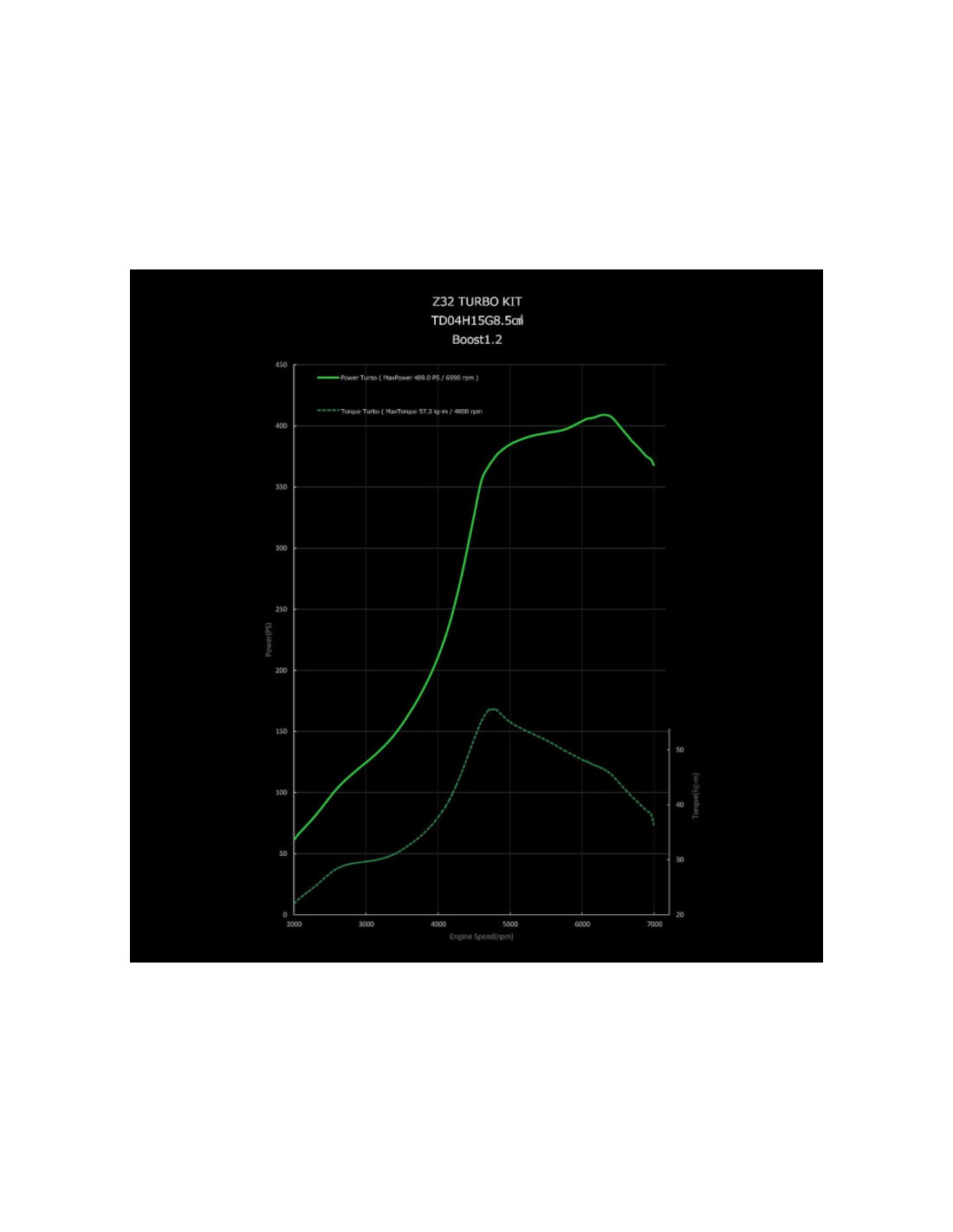 GReddy Twin Turbo Kit for Z32For Nissan 300ZX Z32 (89-00)Engine code : VG30DETTIdeal for stock or tuned engines2x TD04H-15G 8.5cm² turbos at 0.8+ barPower output : 400+ hpHigh quality buildKit designed and made in Japan by GReddyGReddy part no. : 11520098 GReddy Twin Turbo Kit for Nissan 300ZX Z32 SpecificationsWith its extensive experience in the field of turbocharging GReddy offers high-quality kits specially designed to boost the performance of standard turbocharged engines. These kits are mainly characterized by turbos larger than the original equipment in order to allow the engine to produce more power and torque.Developed for the Nissan 300ZX Z32 with VG30DETT engine this kit includes two TD04H-15G 8.5cm² turbos with actuators compatible with the OEM exhaust manifolds and intake pipes. It also includes a stainless steel exhaust outlet tube for connection to the original front pipe.GReddy has designed this kit with reliability and versatility in mind. As a result this kit can be installed without any problem on a stock or modified vehicle. Depending on your setup the minimum boost pressure varies between 0.8 and 0.95 bar. In tests carried out by GReddy the VG30DETT fitted with this kit produced 409 hp at 6990 rpm and 57.3 kgm (562 Nm) at 4800 rpm at 1.2 bar. We can help you with your project so feel free to contact us!Kit Contents2x TD04H-15G 8.5cm² turbosStainless steel turbine outlet 60 mm diameterAll the accessories needed for installation