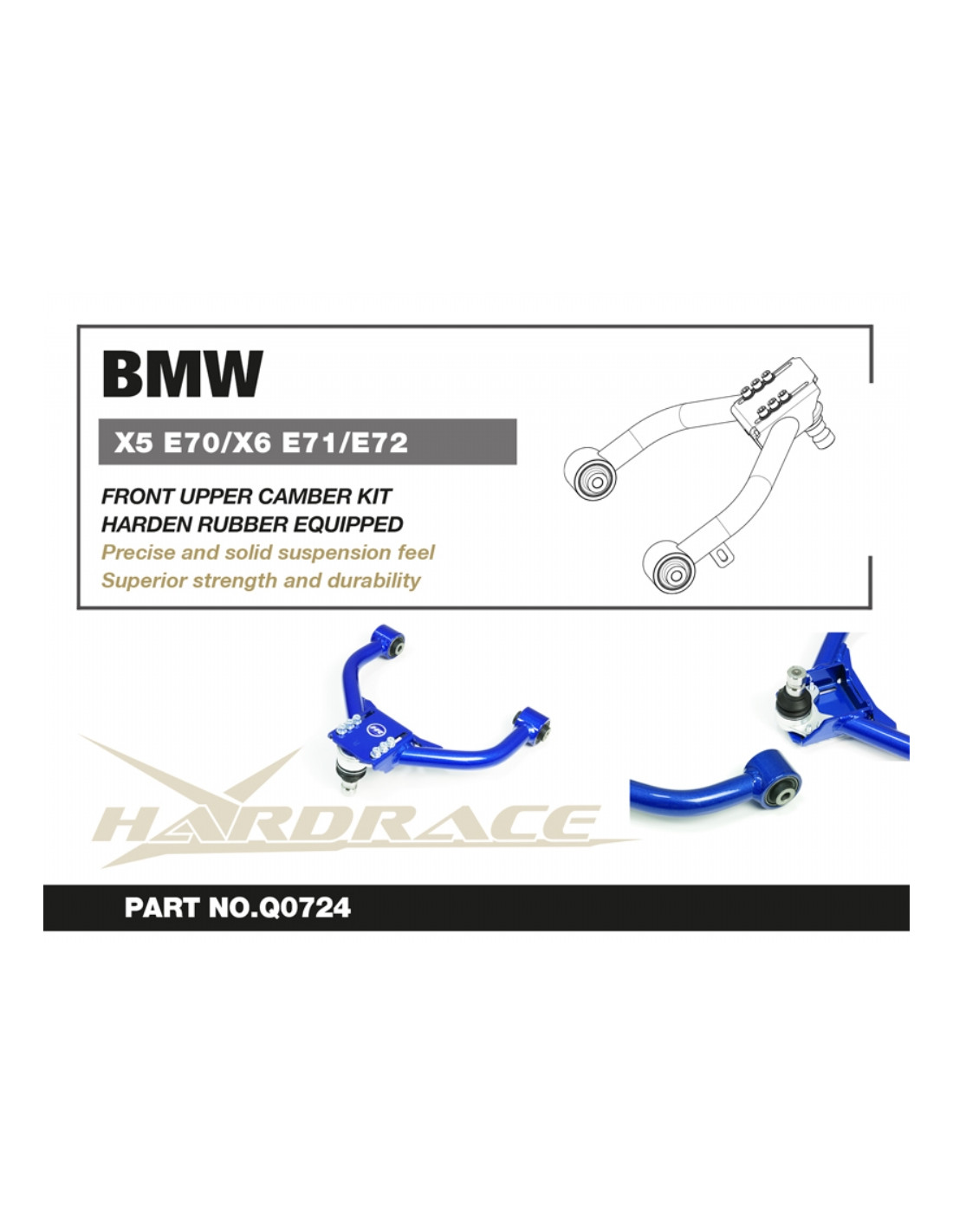 Hardrace Suspension Arm for BMW X5, X6. Ideal for improving driving precision, ride stability and steering response. Manufacturer's Description: - Harden Rubber Equipped 2 PCS/SET
