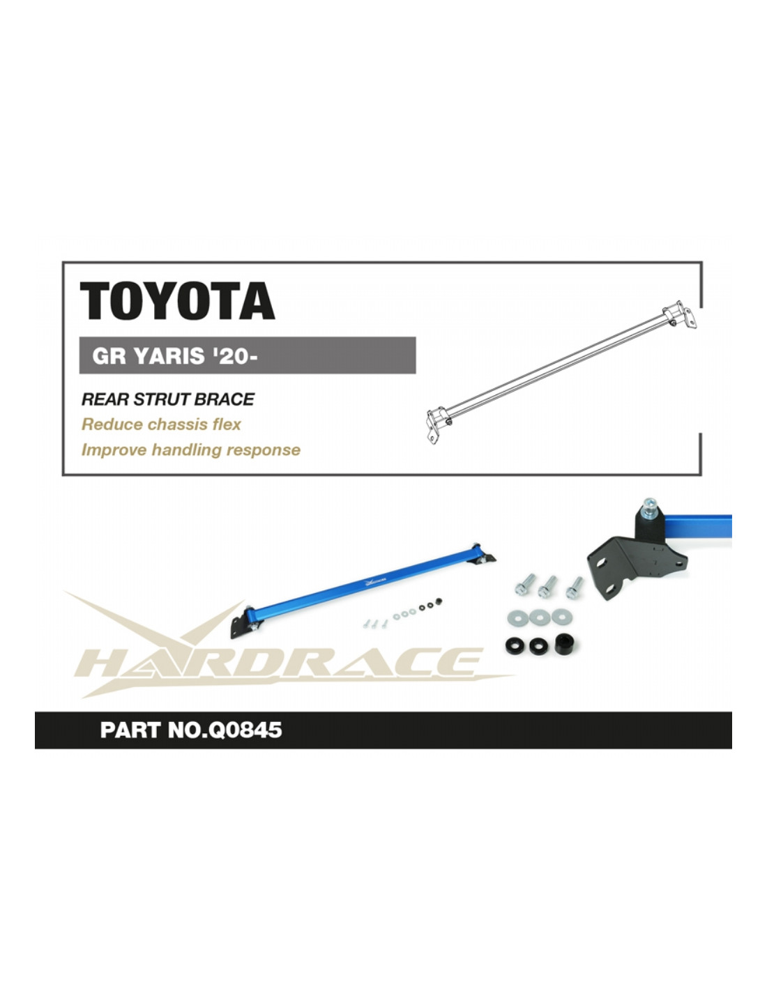 Hardrace strut brace for Toyota Yaris / Vitz. Ideal for improving driving precision, ride stability, and steering response. Manufacturer's specifications : - 1 PCS/SET