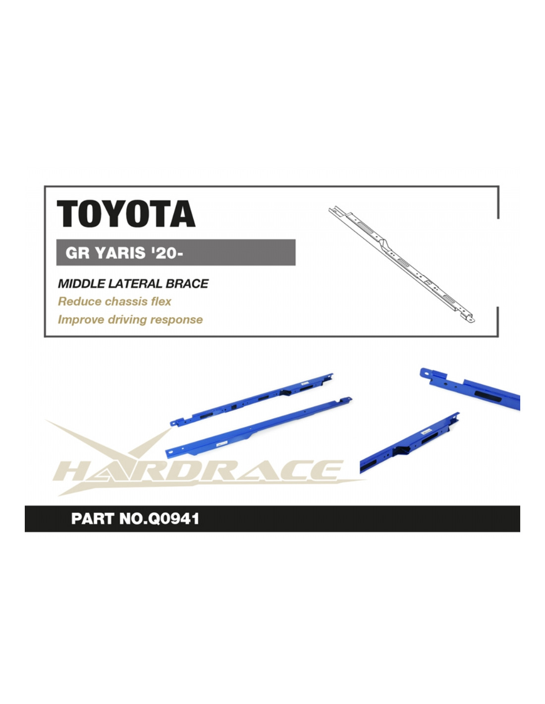 Hardrace strut brace for Toyota Yaris / Vitz. Ideal for improving steering precision, stability, and response. Manufacturer's specifications : - 2 PCS/SET