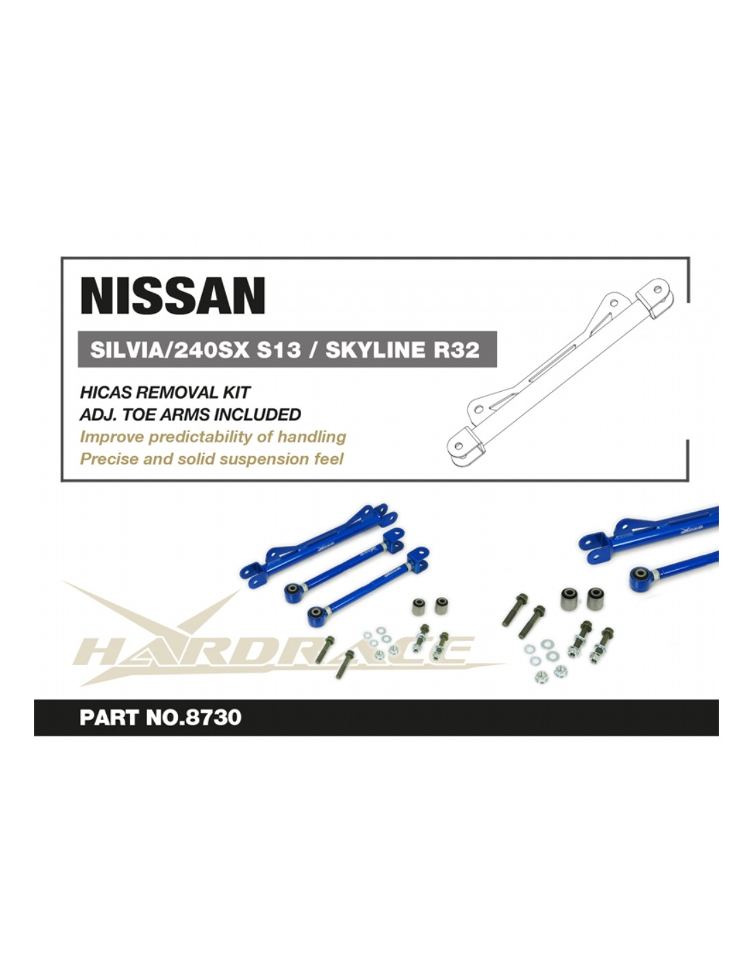 Braccio sospensione Hardrace per Nissan 240SX, Skyline. Ideale per migliorare la precisione di guida, la stabilità dell'assetto e la risposta dello sterzo. Caratteristiche dal produttore : - * Adjustable Toe Arms (Harden Rubber) Included * Knuckle Bushings Included (Harden Rubber, OD=31mm) 5 PCS/SET