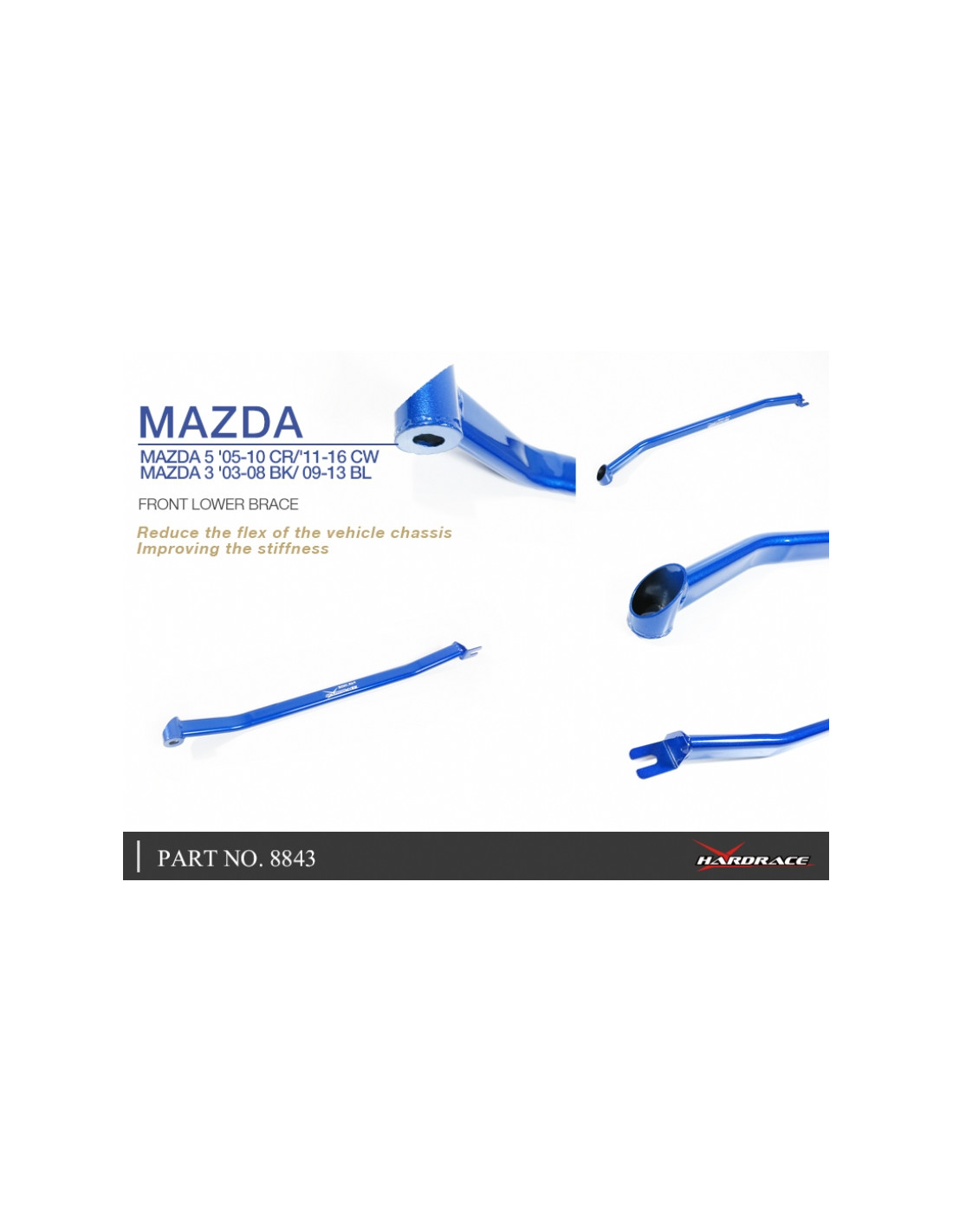 Barra rinforzo Hardrace per Mazda 3, 5. Ideale per migliorare la precisione di guida, la stabilità dell'assetto e la risposta dello sterzo. Caratteristiche dal produttore : - 1 PCS/SET