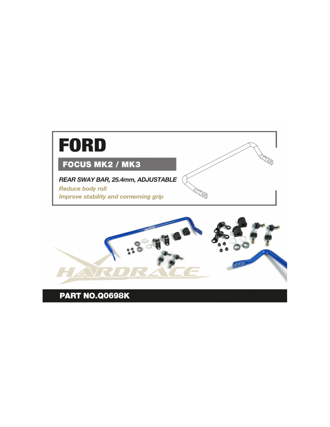 Barra stabilizzatrice Hardrace per Ford, Mazda, Volvo. Ideale per migliorare la precisione di guida, la stabilità dell'assetto e la risposta dello sterzo. Caratteristiche dal produttore : - 25.4 mm 15 PCS/SET End links included * Focus: Not for MK2 RS & MK3 ST/RS