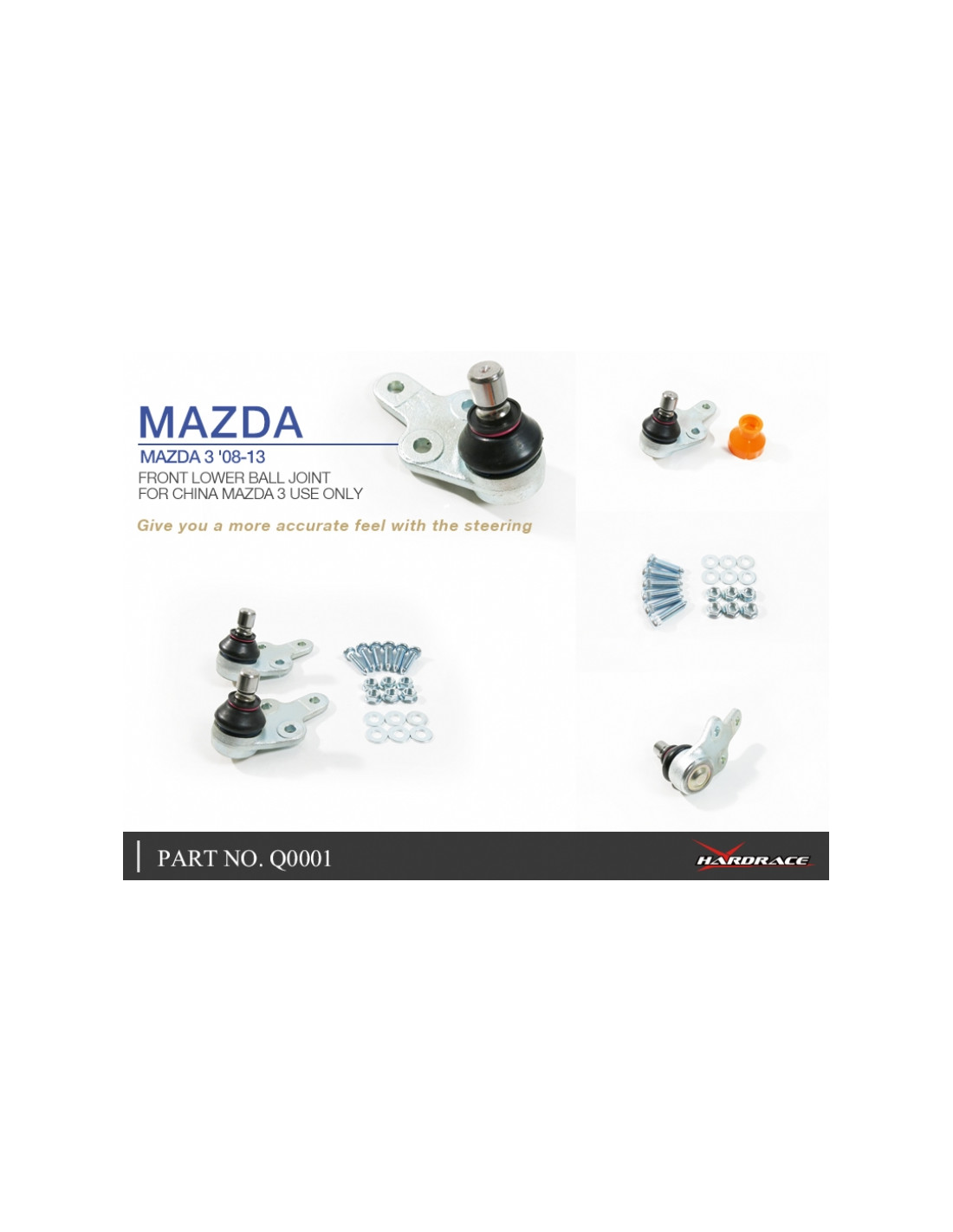 Snodo RC Hardrace per Mazda 3. Ideale per migliorare la precisione di guida, la stabilità dell'assetto e la risposta dello sterzo. Caratteristiche dal produttore : - OE STYLE, 2 PCS/SET FOR CHINA MAZDA 3 USE ONLY