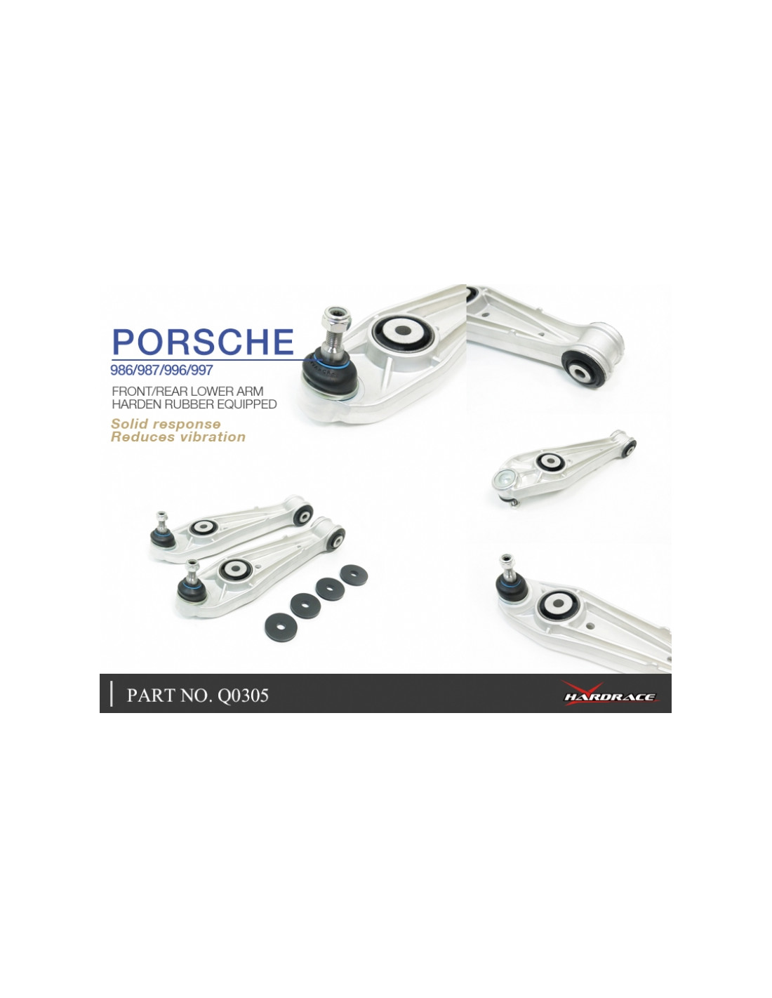 Braccio sospensione Hardrace per Front/rear Lower Arm Porsche 911, Boxster. Ideale per migliorare la precisione di guida, la stabilità dell'assetto e la risposta dello sterzo. Caratteristiche dal produttore : - Harden Rubber Equipped 2 PCS/SET Aluminum Arm