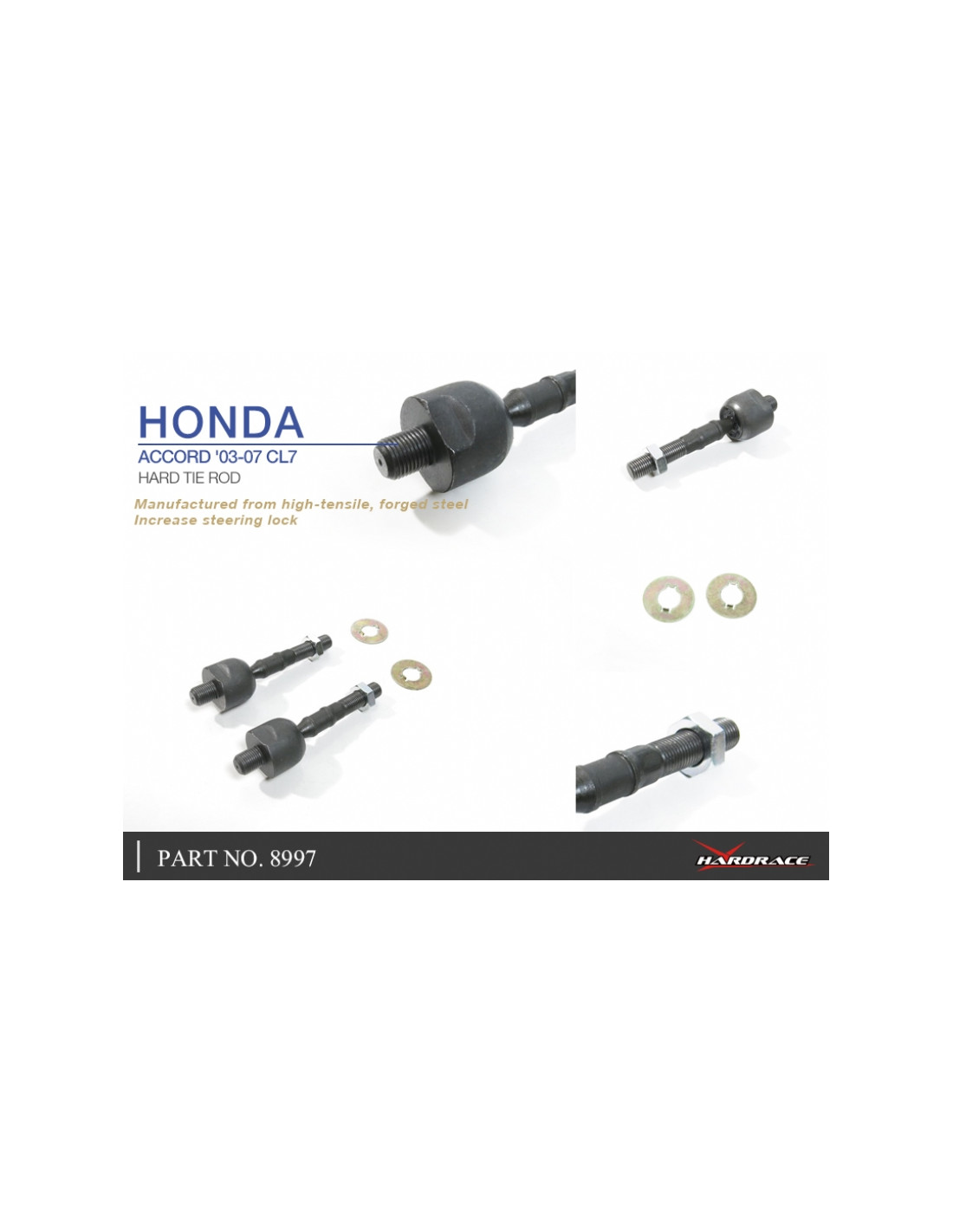 Tirante sterzo super angle Hardrace per Honda Accord. Ideale per migliorare la precisione di guida, la stabilità dell'assetto e la risposta dello sterzo. Caratteristiche dal produttore : - OE Style 2PCS/SET * FOR CL7 USE ONLY