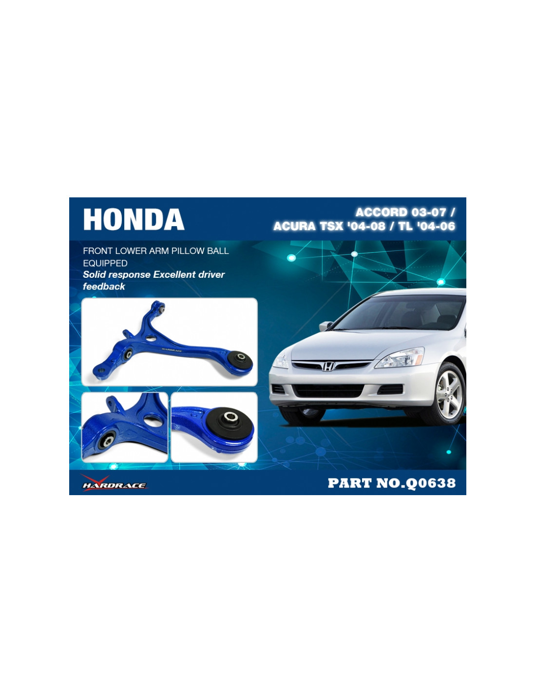 Braccio sospensione Hardrace per Front Lower Arm. Ideale per migliorare la precisione di guida, la stabilità dell'assetto e la risposta dello sterzo. Caratteristiche dal produttore : - PILLOW BALL EQUIPPED 2PCS/SET *Acura TL: For 2004-2006 only