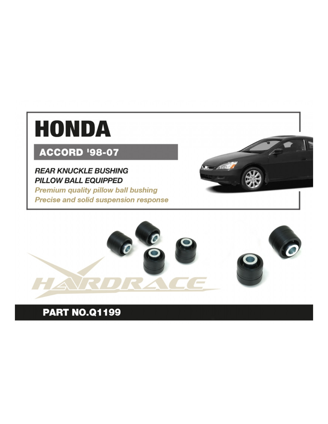 Silent block Hardrace per Honda Accord. Ideale per migliorare la precisione di guida, la stabilità dell'assetto e la risposta dello sterzo. Caratteristiche dal produttore : - Pillow Ball Equipped * Accord 7th JDM & EUDM : For Sedan Only 4 PCS/SET