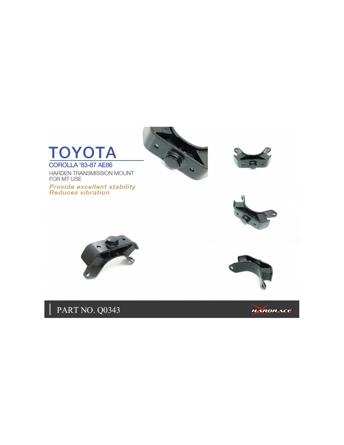 Supporto motore Hardrace per Toyota 86. Ideale per migliorare la precisione di guida, la stabilità dell'assetto e la risposta dello sterzo. Caratteristiche dal produttore : - 1 PC/SET MT Used Only