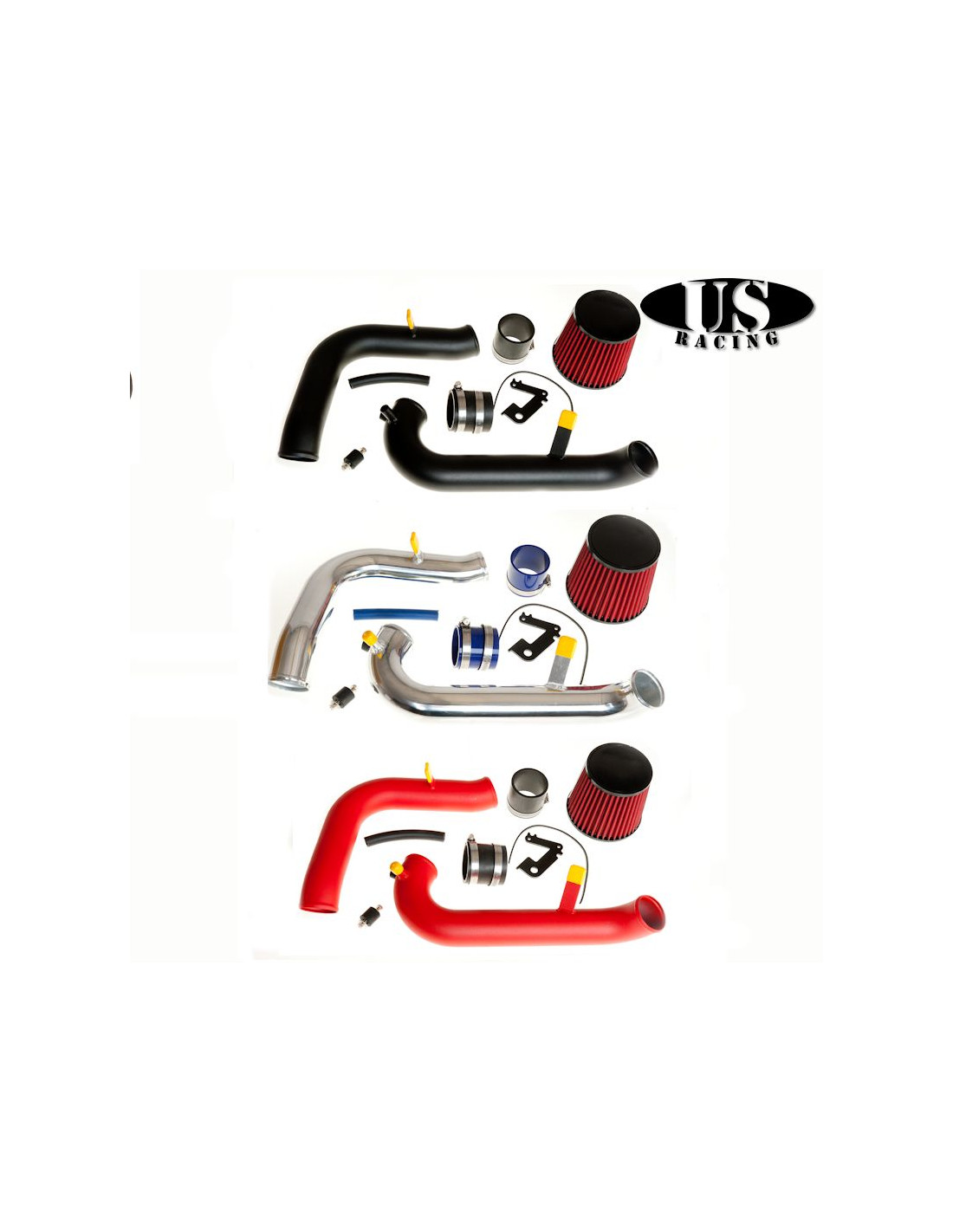 I sistemi di aspirazione dell'aria sono progettati per massimizzare il flusso d'aria attraverso il sistema di collettori di serie o aftermarket. Rimuovendo il sistema di aspirazione in gomma stampata di serie e aggiungendo i tubi di aspirazione piegati a mandrino US-Racing di qualità con raggio costante, si ottiene il massimo flusso d'aria attraverso il corpo farfallato. Il massimo flusso d'aria si traduce in una migliore risposta dell'acceleratore e in un aumento della potenza. Le prese d'aria fredda hanno tubi lunghi e filtri bassi. Invece di aspirare l'aria dal vano motore, dove ha avuto il tempo di riscaldarsi, la Aspirazione Diretta aspira l'aria da vicino al suolo, portandola al motore mentre è ancora freddo. Con questa Aspirazione Diretta, l'aria è più densa e può essere miscelata con il carburante, portando a un contenuto di ossigeno più elevato e a un'esplosione più potente, facendo girare il motore più velocemente.