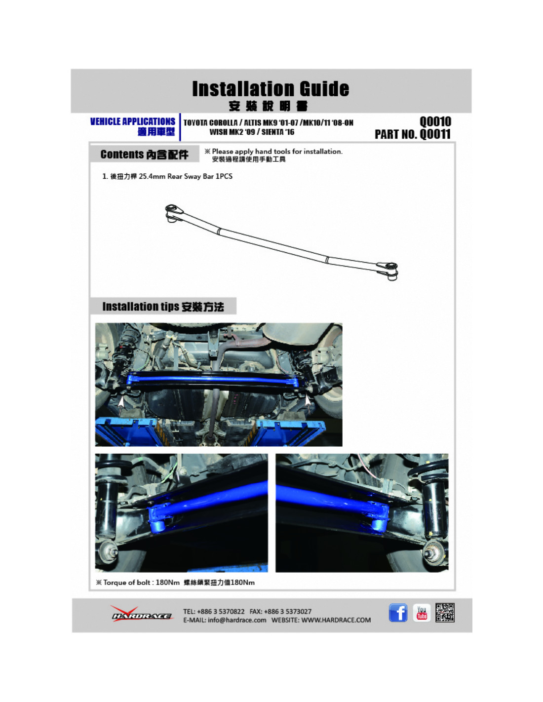 Braccio sospensione Hardrace per Toyota Corolla/altis/auris, Wish. Ideale per migliorare la precisione di guida, la stabilità dell'assetto e la risposta dello sterzo. Caratteristiche dal produttore : - 25.4 mm 1 PCS/SET Version 2