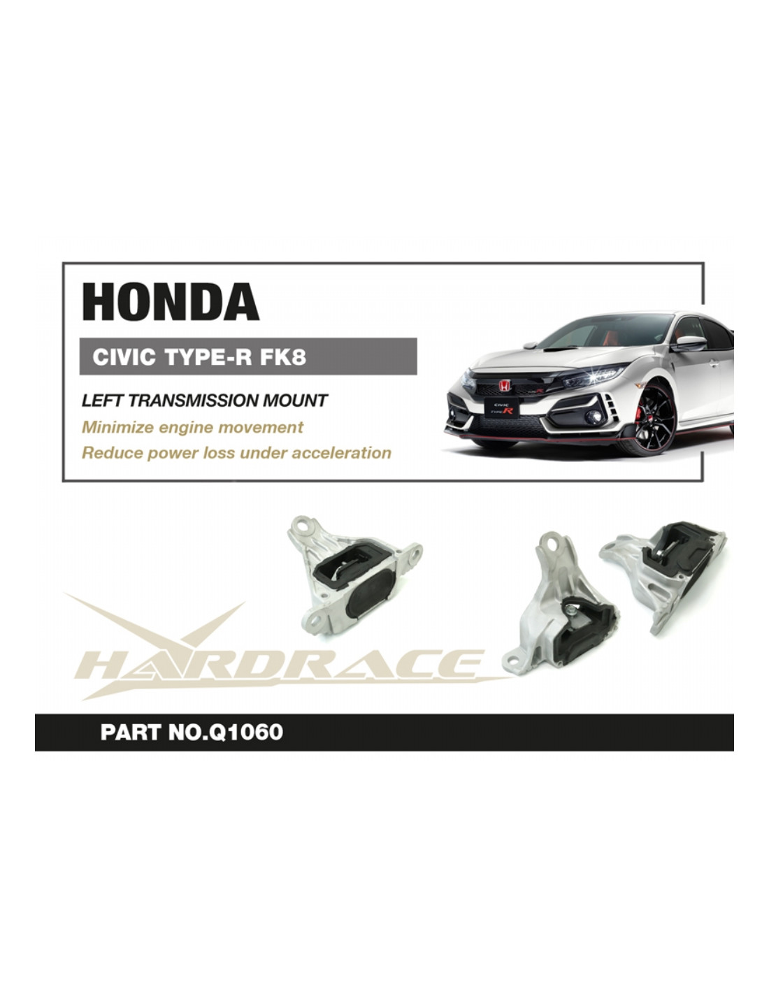 Supporto motore Hardrace per Honda Civic. Ideale per migliorare la precisione di guida, la stabilità dell'assetto e la risposta dello sterzo. Caratteristiche dal produttore : - 1 PCS/SET
